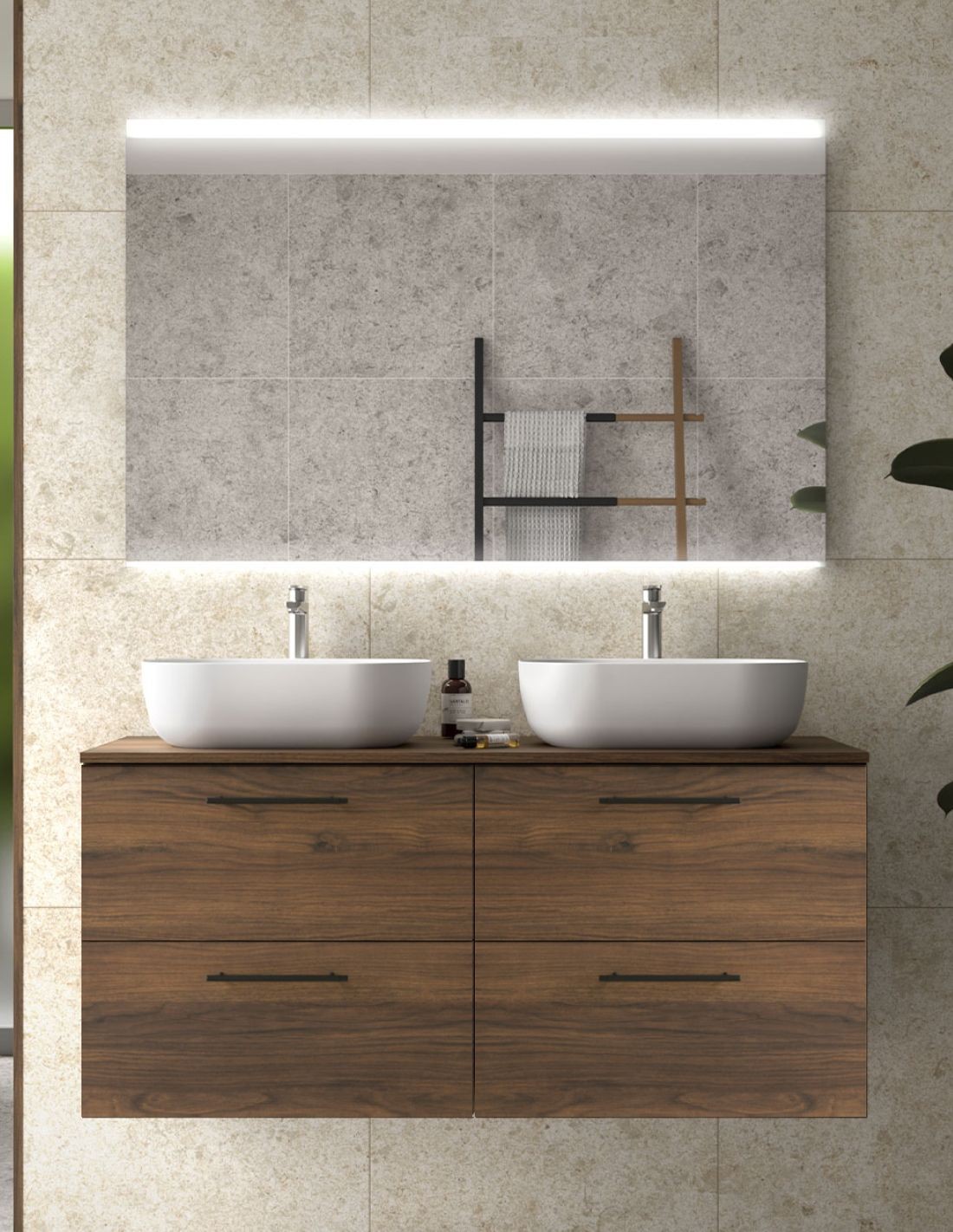 Mueble dos lavabos encimera Salgar opciones tiradores