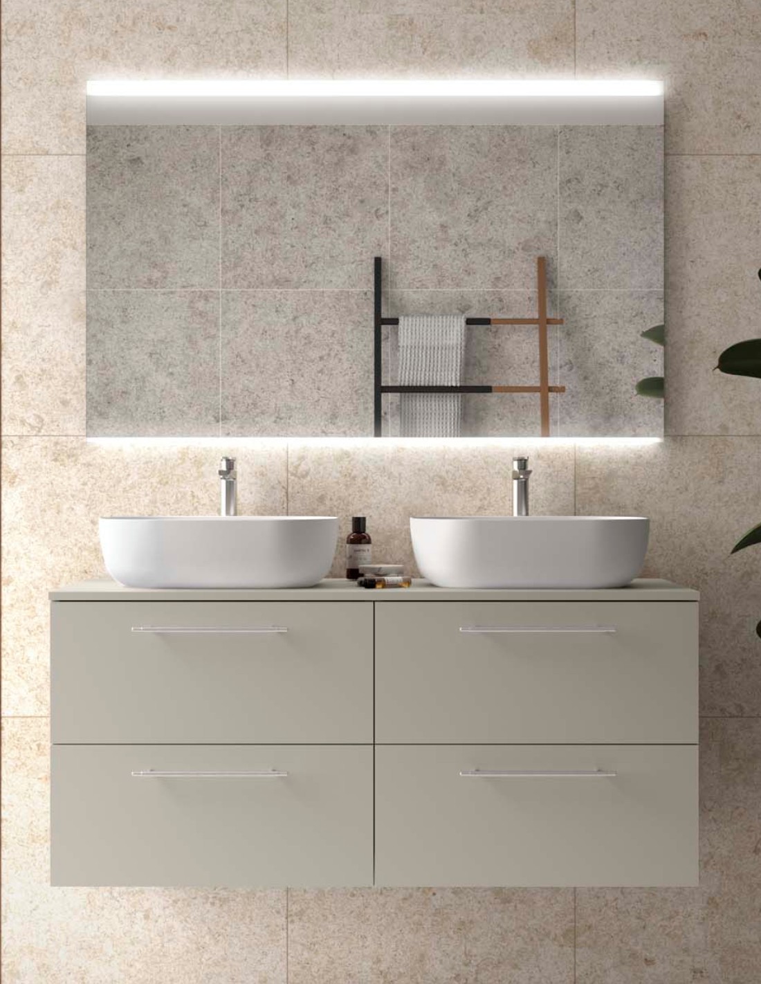 Mueble dos lavabos encimera Salgar - SILANE 4 cajones tiradores texturizados