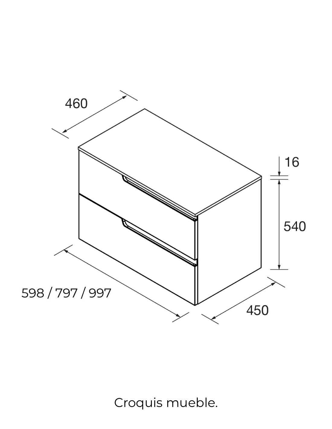 Mueble baño sobre encimera Salgar croquis