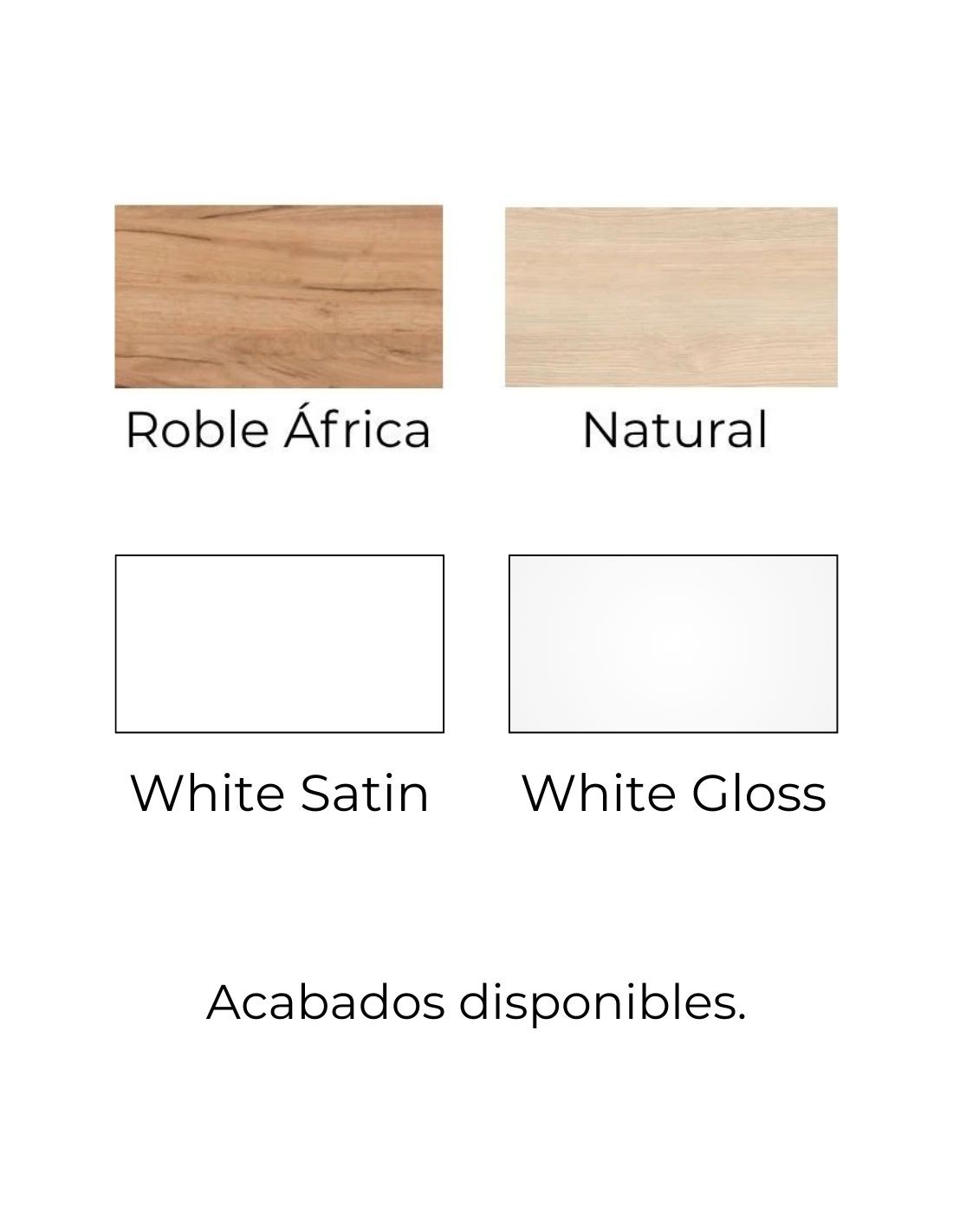 Disponible en acabados: Roble África y Natural, White Gloss y White Satin.
