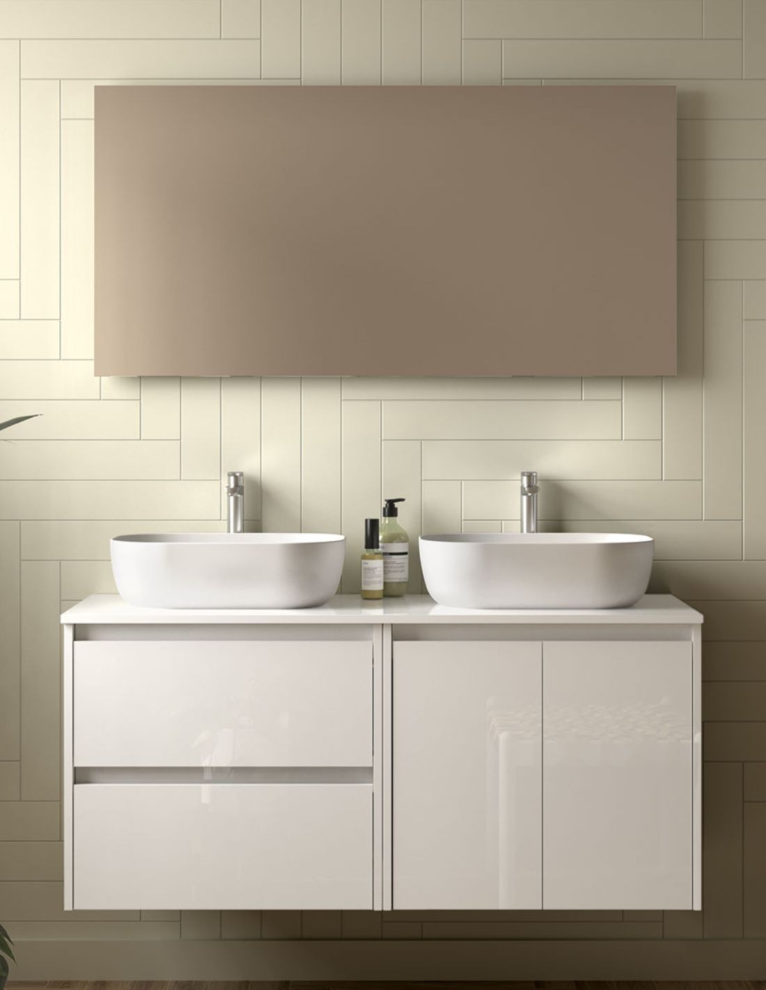 • Incluido UNOó DOS LAVABOS CERÁMICOS sobre encimera de diseño exclusivo.