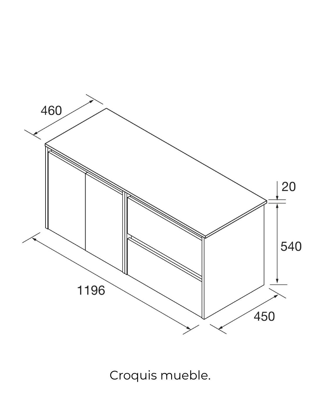 Mueble baño Noja Salgar sobre encimera croquis 120