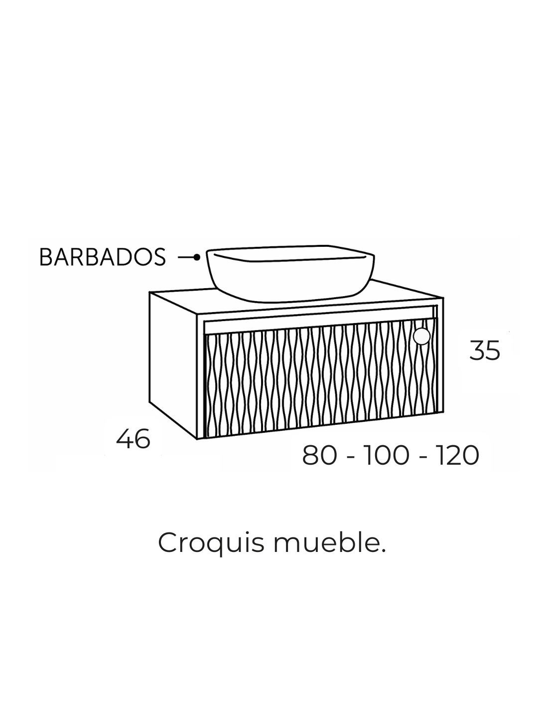 El mueble se vende sin calados (para poder poner el lavabo en la posición que desee: centrado o desplazado a un lado).