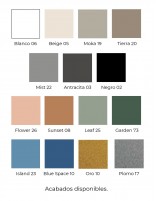 Acabados del cajón disponibles: colores mate o metalizados (ver tabla).