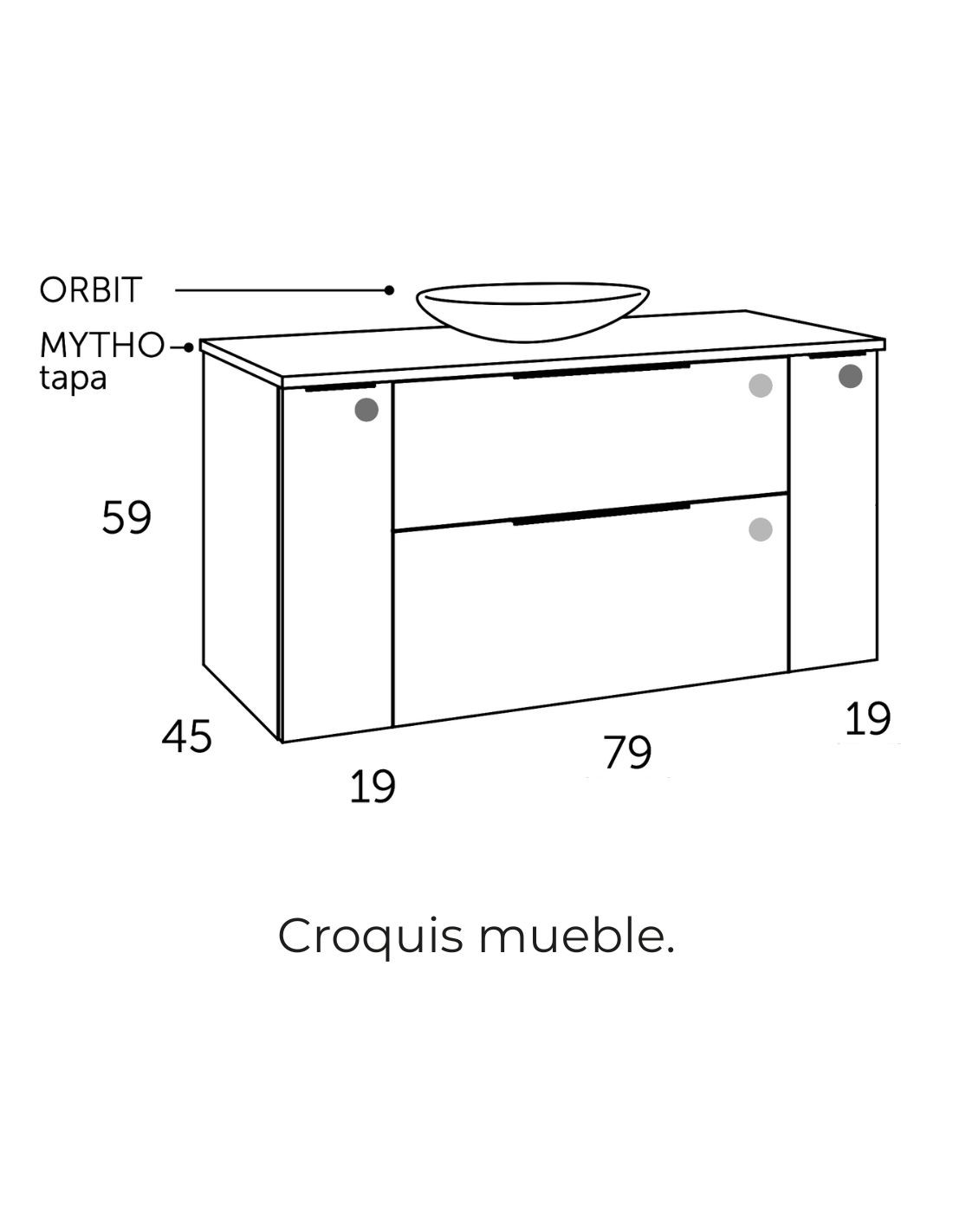 Mueble baño 2 cajones y 2 puertas croquis lavabo