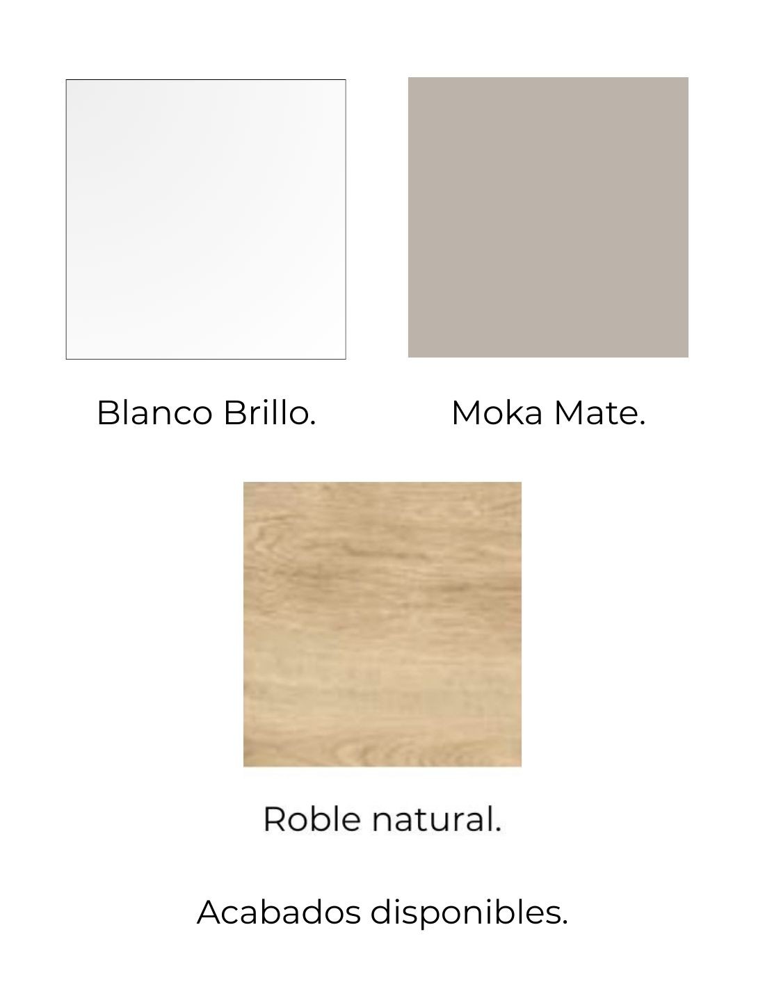 Disponible en: Blanco brillo, Moka Mate y Roble natural.