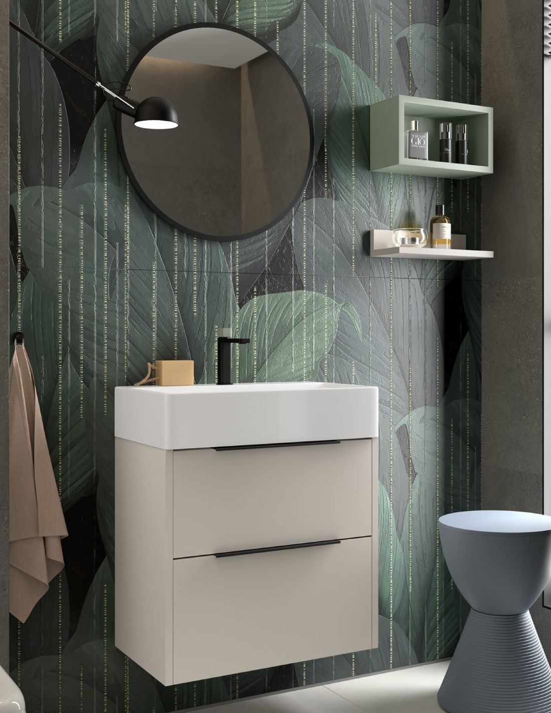Si tienes poco espacio en tu baño o necesitas un mueble pequeño para un aseo, te presentamos nuestro modelo de conjunto baño fondo reducido BAMBI de 2 cajones con fondo de 35 cm.