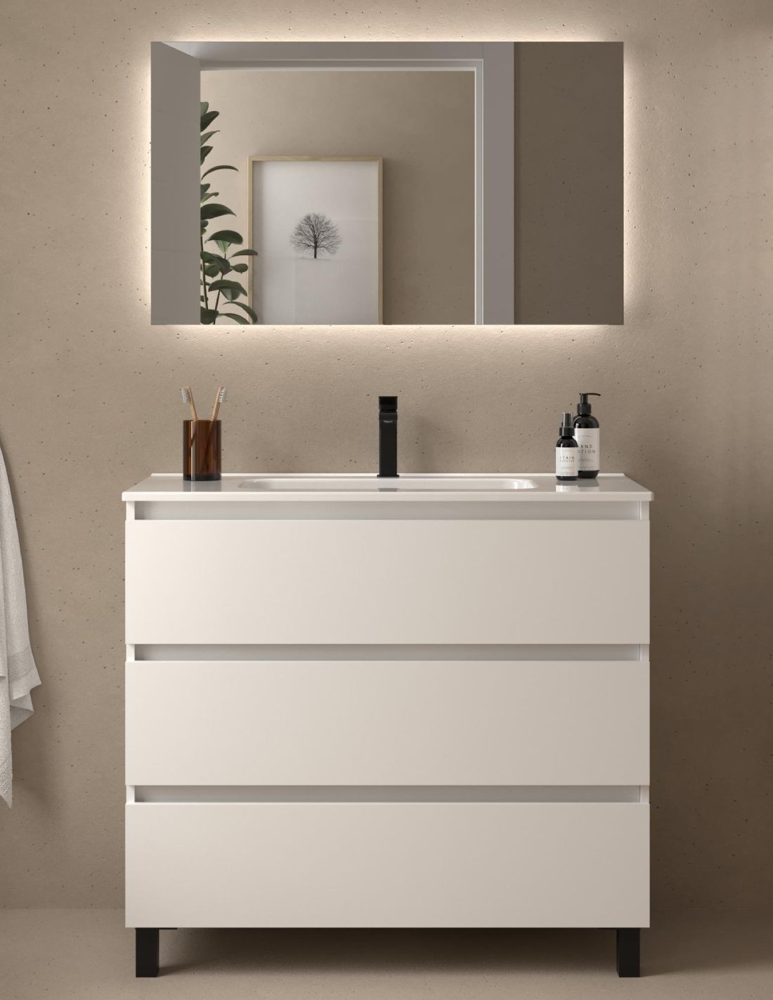 Mueble baño 3 cajones blanco mate 100