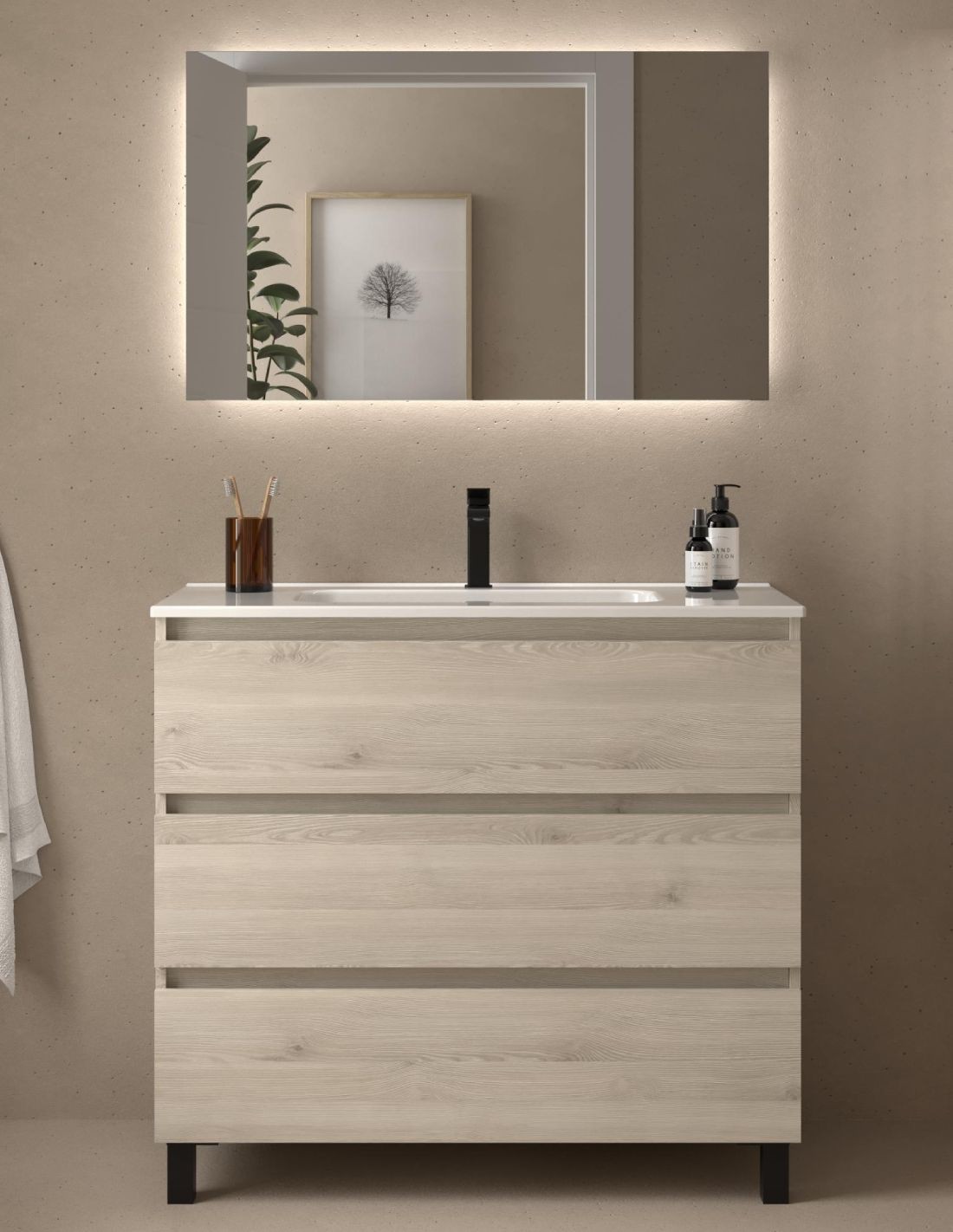 Mueble baño 3 cajones natural 100