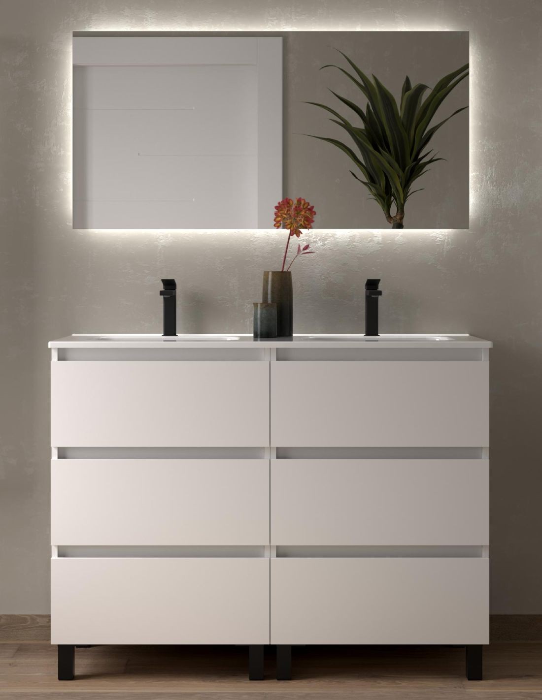 ¿Buscas un mueble de baño de limpio y atemporal? El modelo de mueble baño con patas 120 Bequia es lo que buscas. 6 cajones con tiradores embutidos. ¡Conócelo!