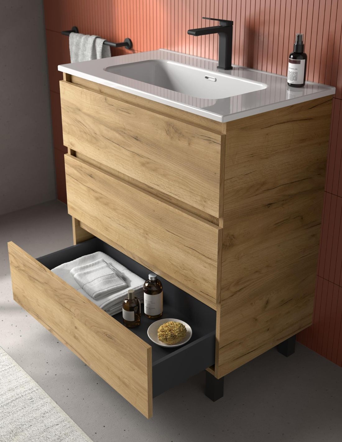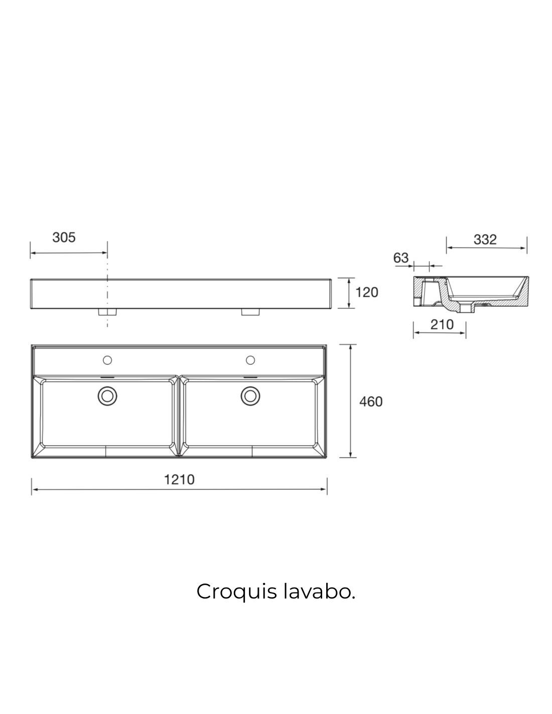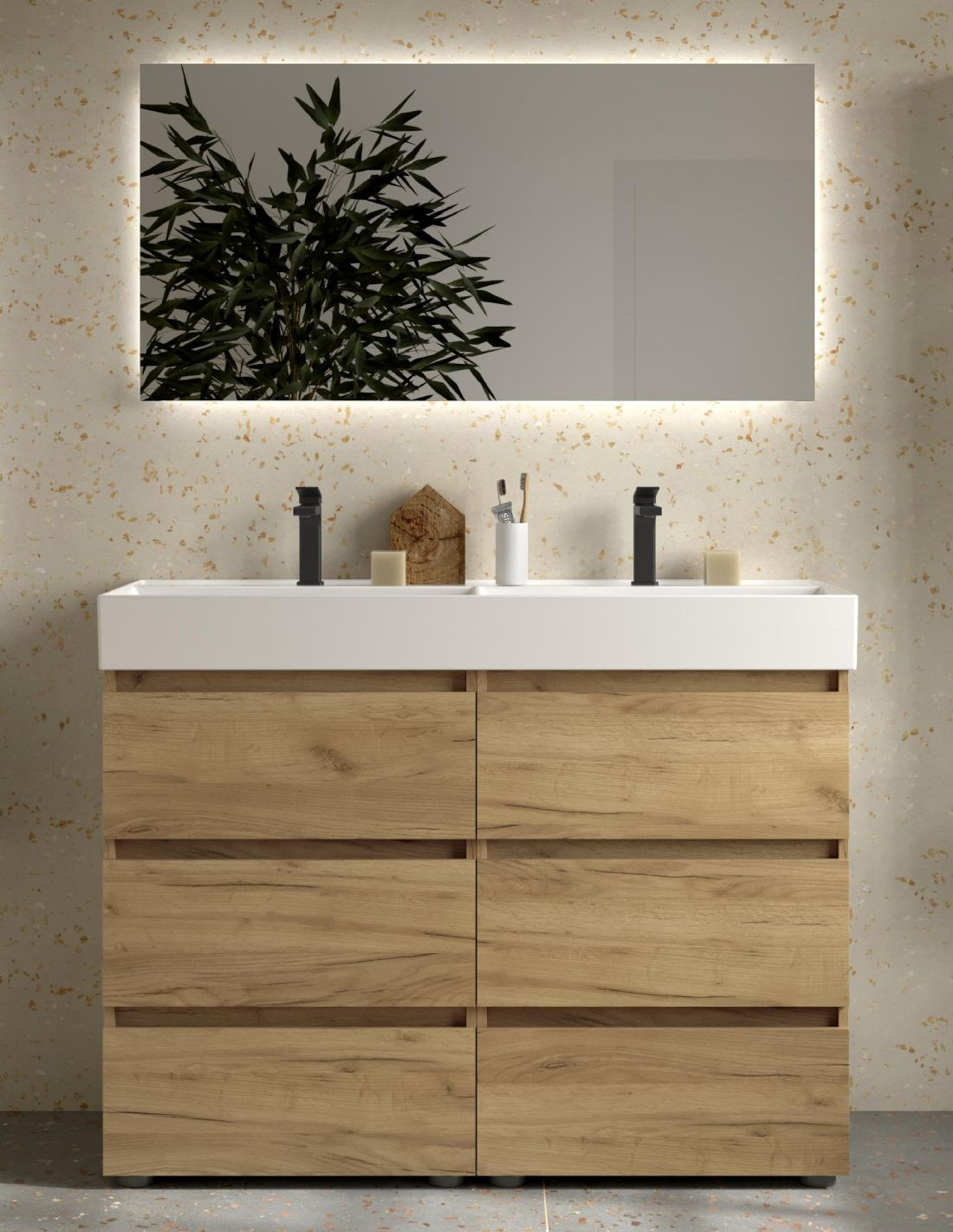 ANCHO: 120 cm. (6 cajones y 2 senos en el lavabo). También disponible en 80 y 100 cm.