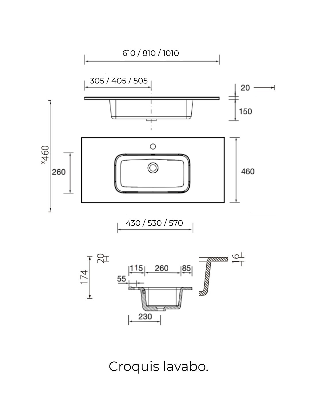 - Lavabo con rebosadero.