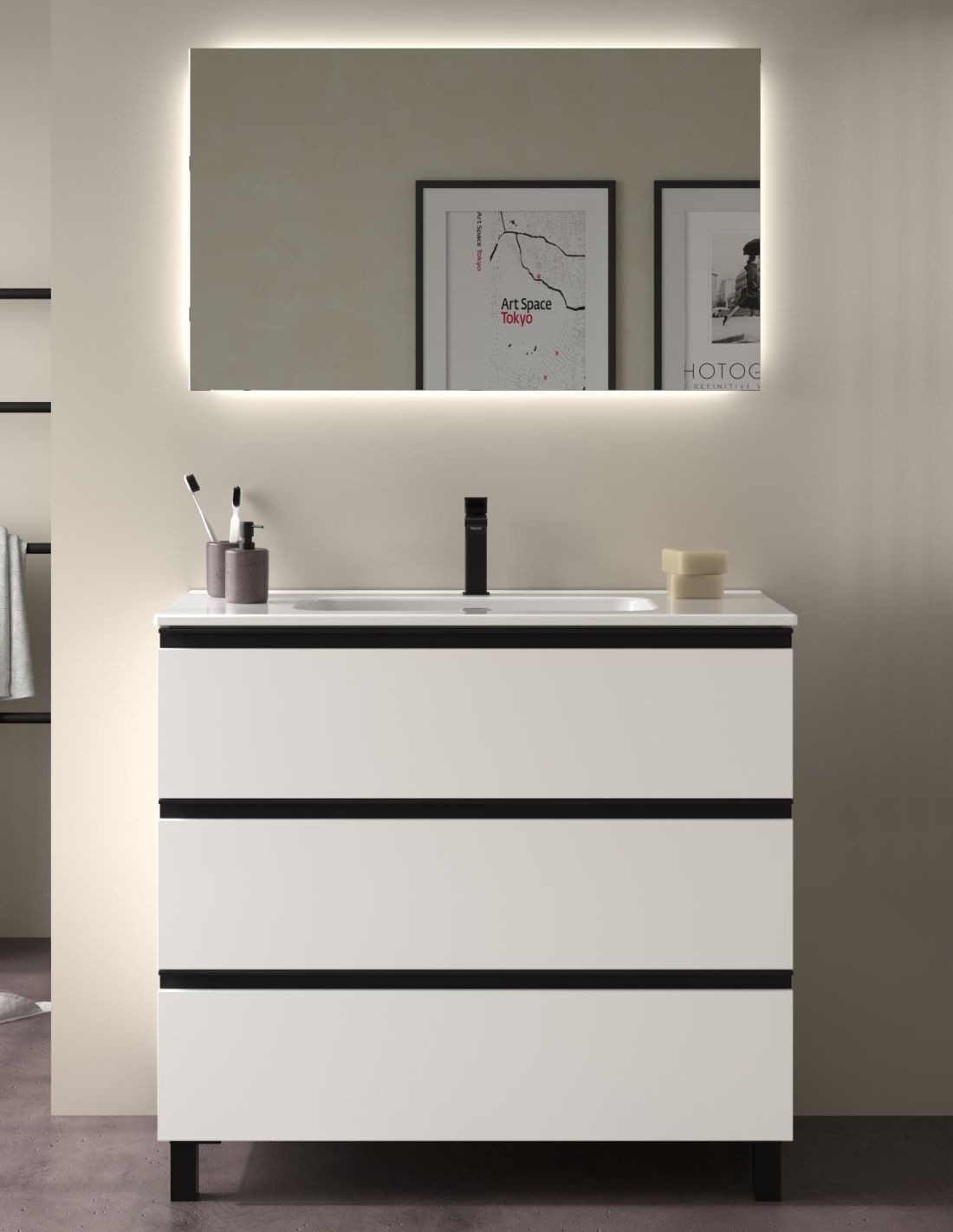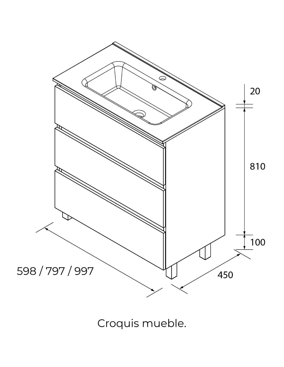 3 cajones con lavabo cerámico incluido.