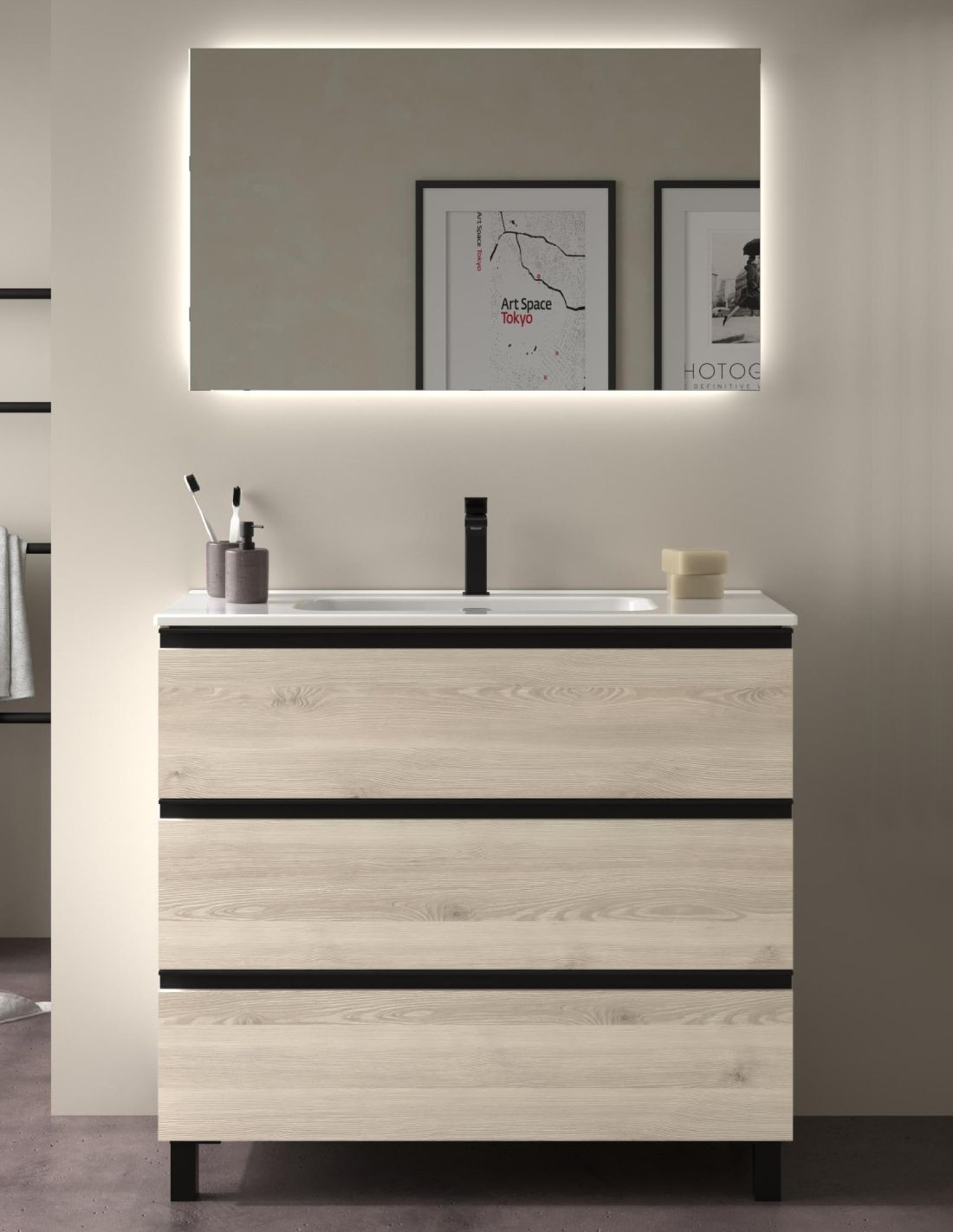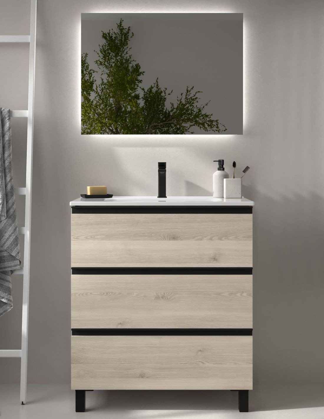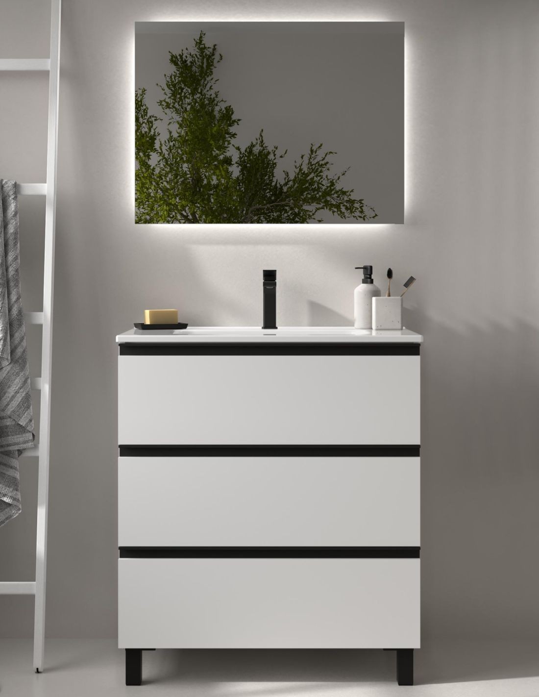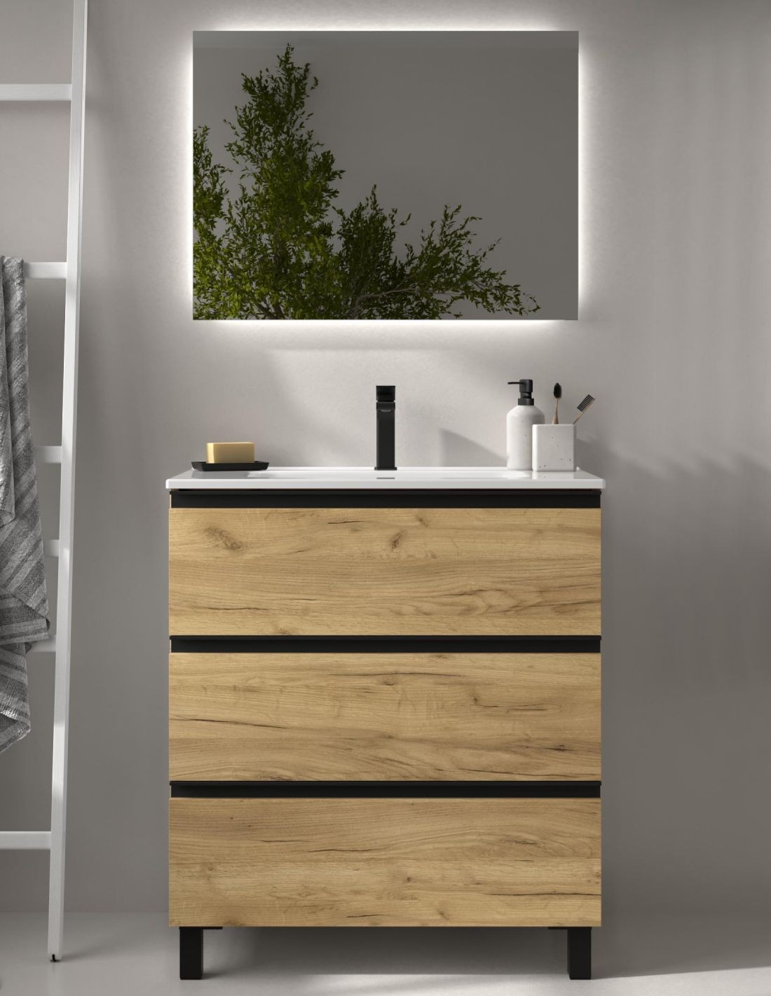 ¿Buscas un mueble de baño de con diseño industrial y moderno? El modelo de conjunto 3 cajones Bequia Metal es lo que buscas. Únete a la tendencia de los detalles negros y dale un aire nuevo a tu cuarto de baño. ¡Conócelo!