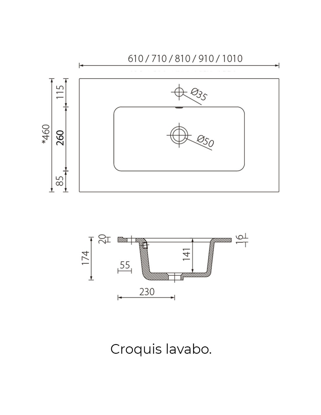 - Lavabo con rebosadero.