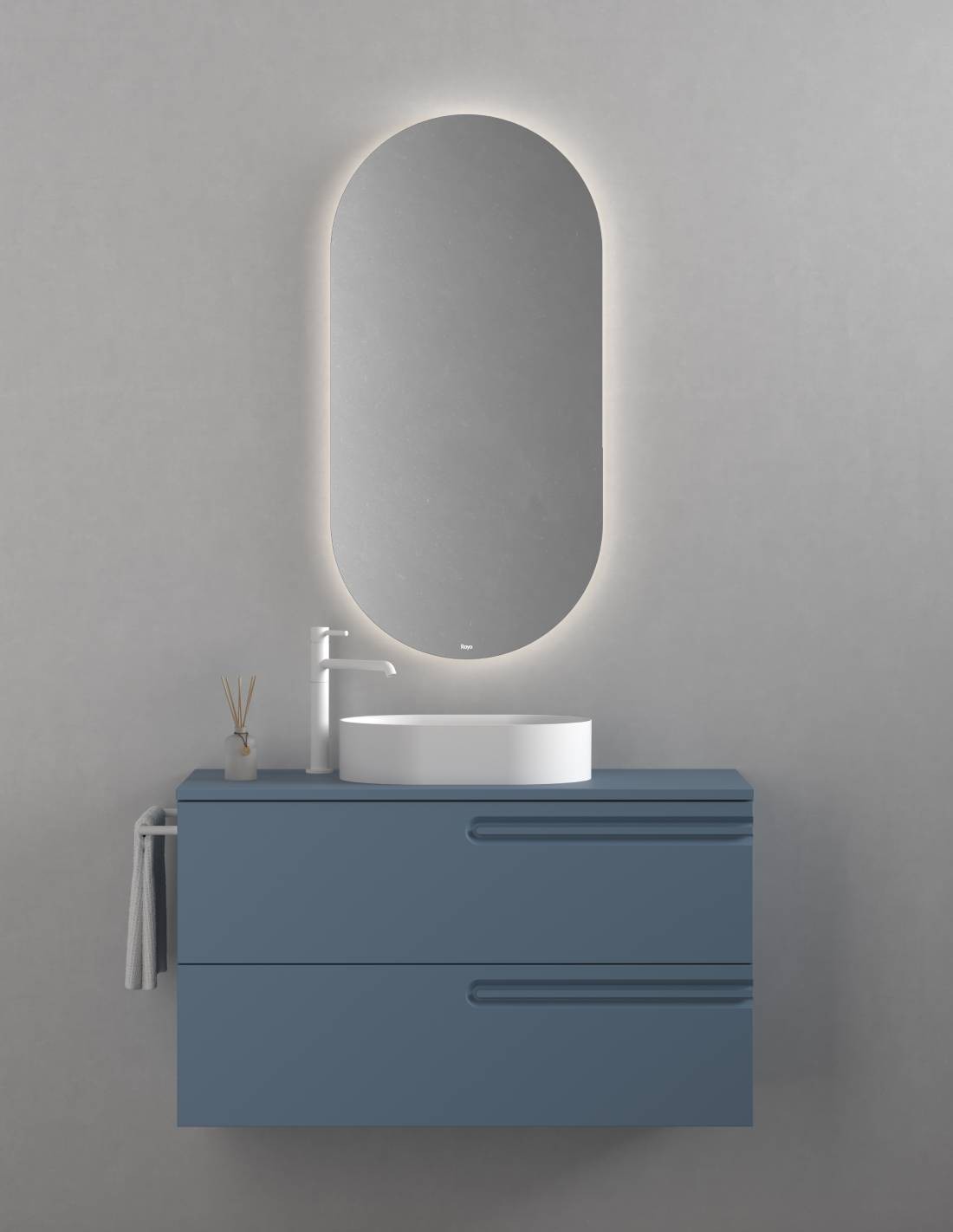 Incluido: Lavabo de solid surface sobre encimera de diseño exclusivo modelo OVAL en acabado Blanco Mate. Incluye embellecedor serigradiado en el mismo tono.