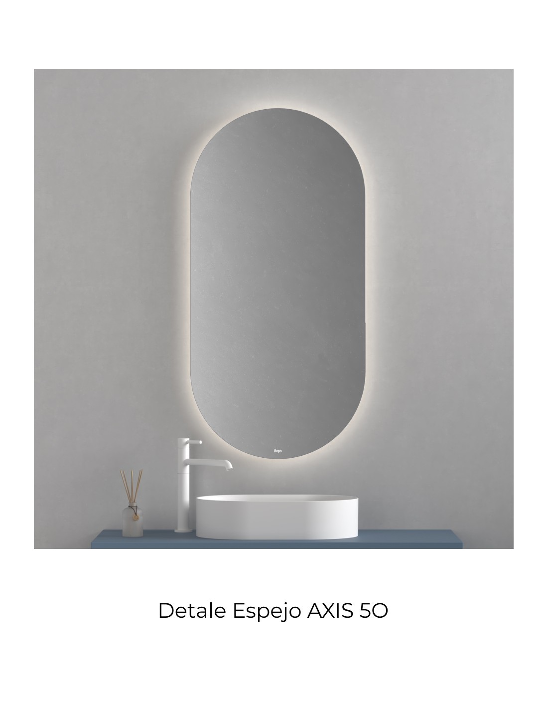 • Conjunto Premium: Espejo LED AXIS (Luz natural LED ambiente. Trasera PVC. Luna pulida rectangular con cantos redondeados. Temperatura: 4000K. 36 000h de luz. Profundidad: 3cm. Fácil instalación. Espejo serigrafiado. (Medidas: 80/100 ancho x 80/100 cm alto). + lavabo cerámico Enzo Blanco brillo + mueble Econic.