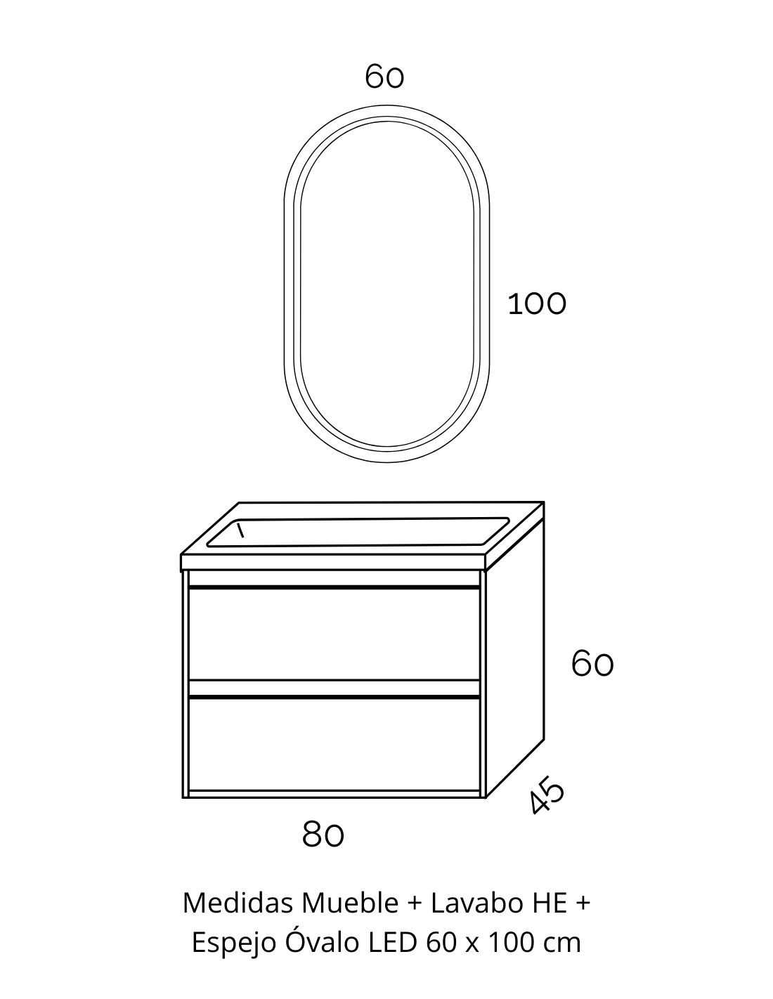 Croquis Mueble de baño con lavabo incluido - Espejo Óvalo LED OSUNA de Bathplus