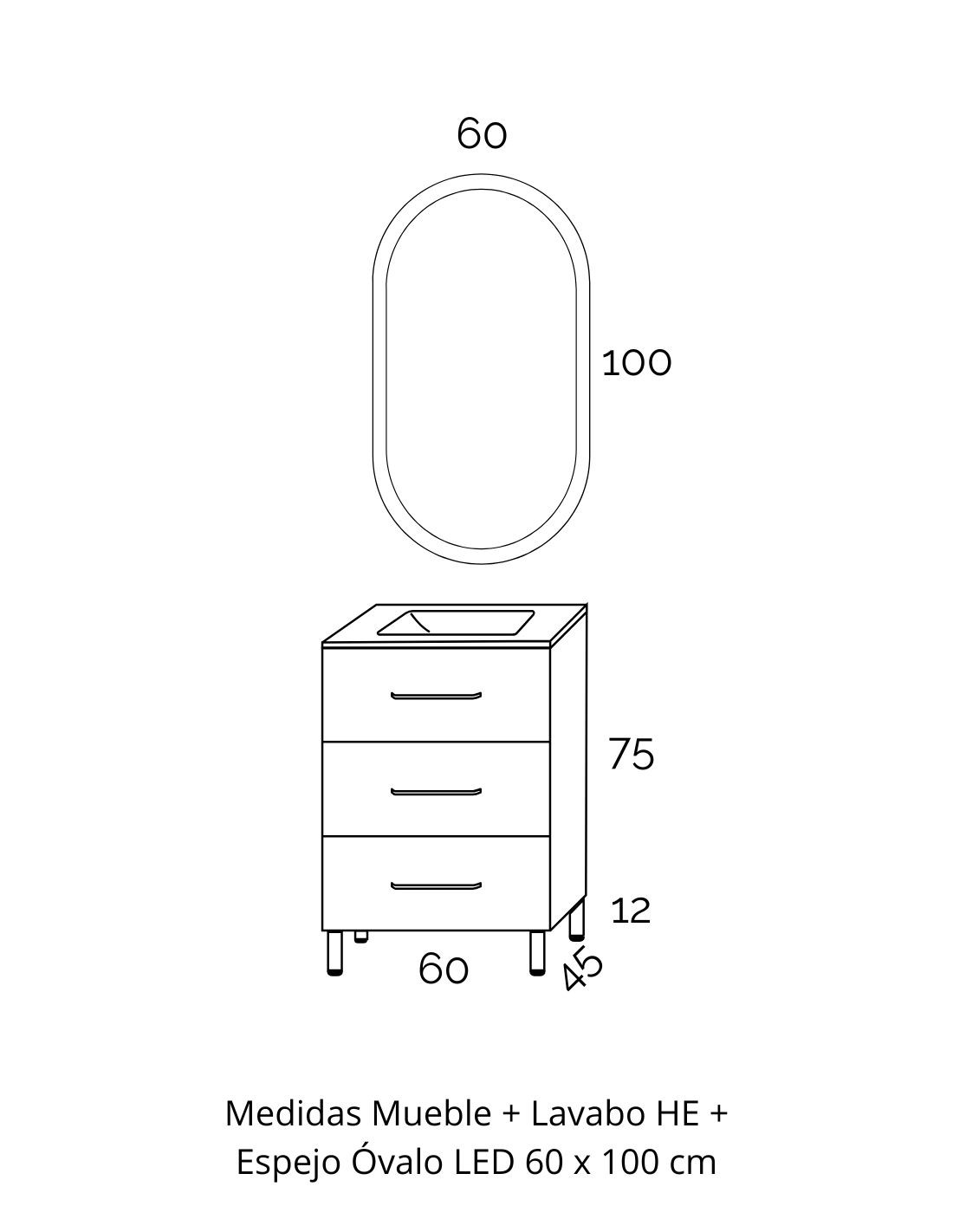 Acabados Mueble baño 3 cajones con espejo óvalo -  FUNY