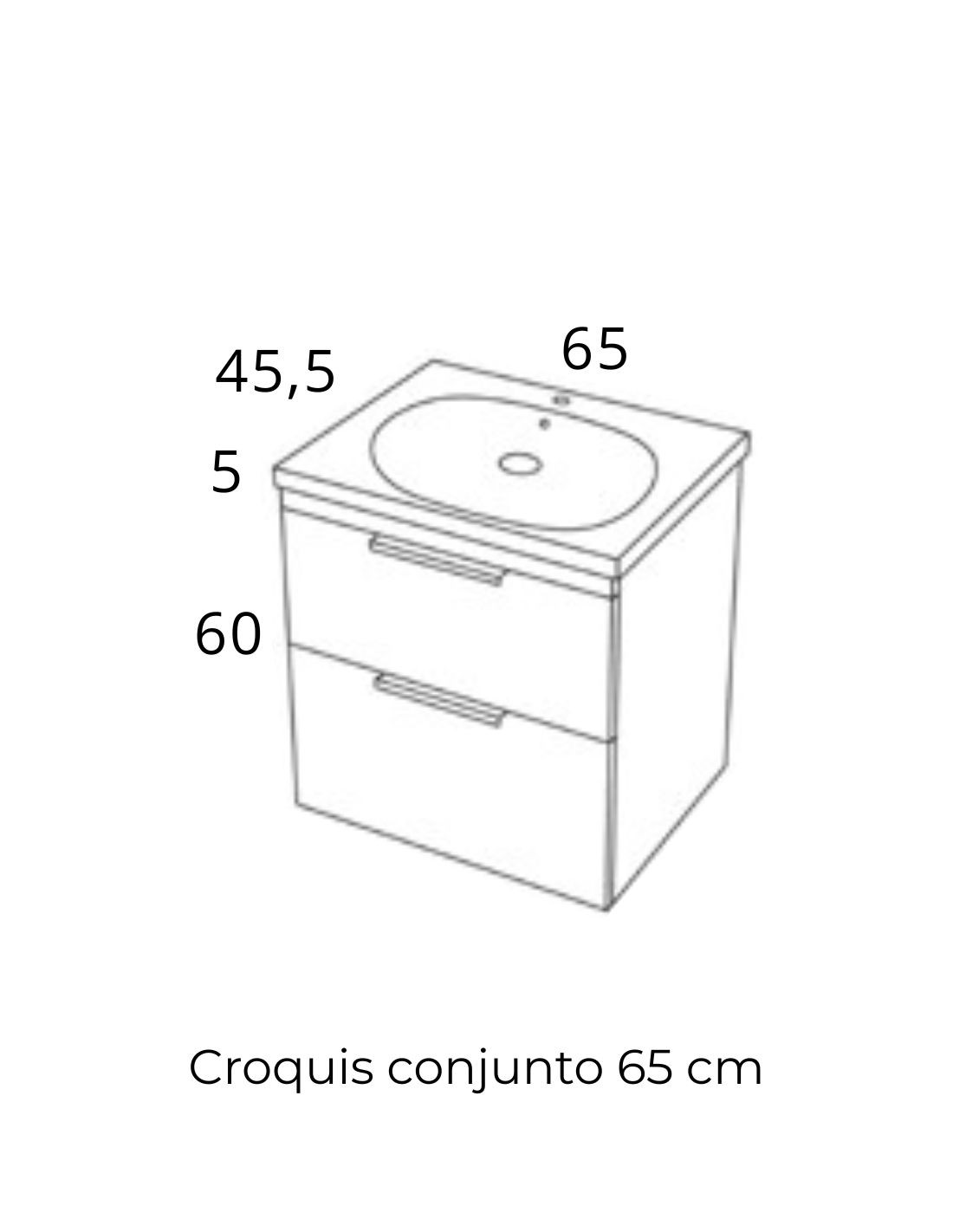 ANCHO: 65, 85, y 100 cm. (2 cajones y un lavabo).