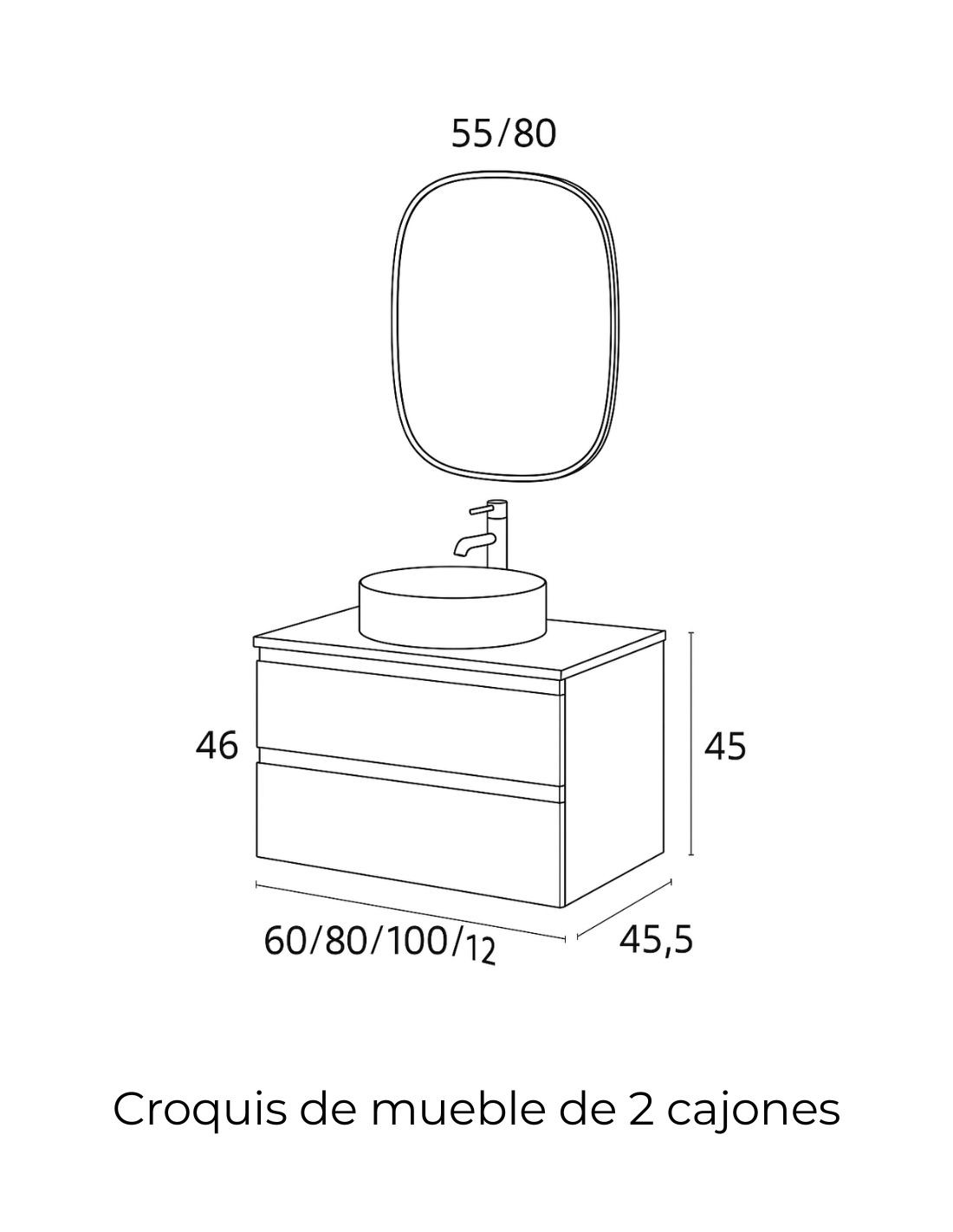ANCHO: 60,80 y 100 cm (2 cajones y 1 lavabos)