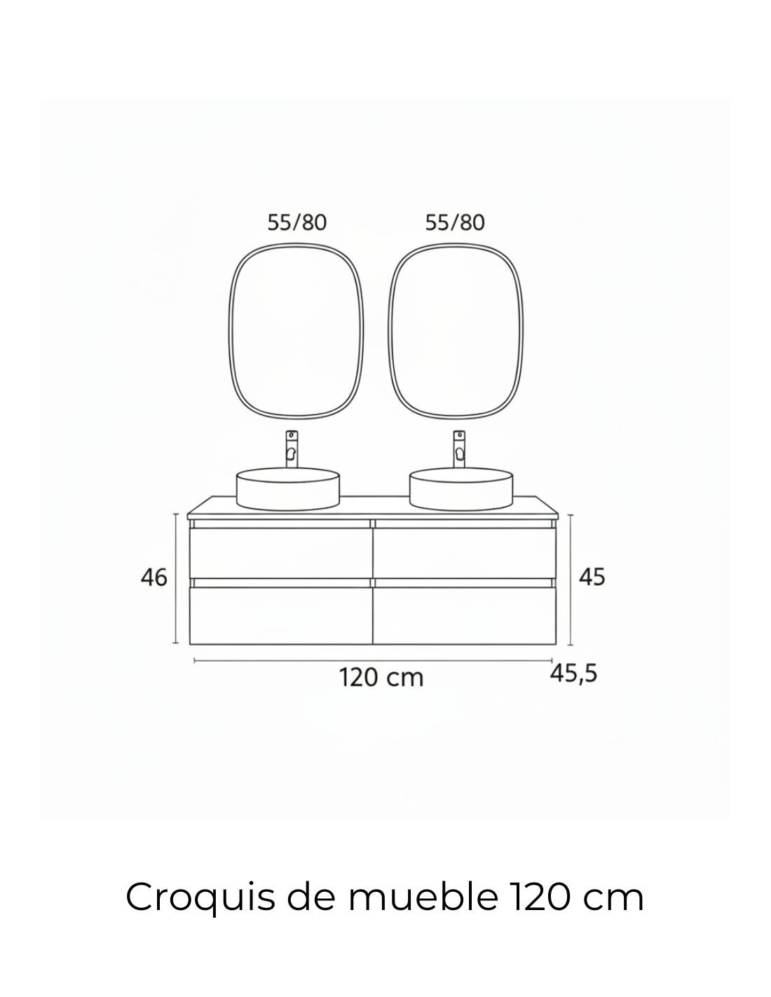 ANCHO: 120 cm (4 cajones y 2 lavabos)
