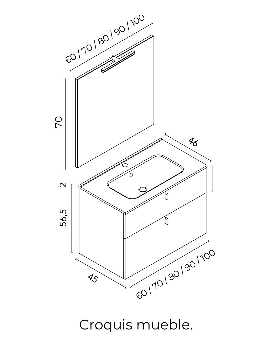 • Medidas del espejo: 70 cm. alto y ancho igual que el mueble.
