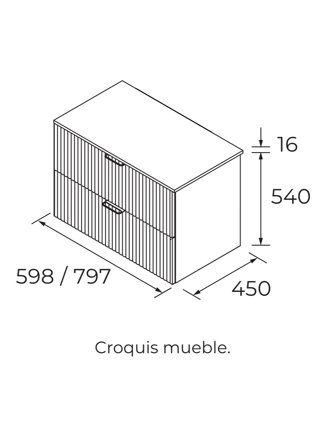 ANCHO: 60 - 80 cm. (2 cajones y 1 lavabo). También disponible de 1 cajón.