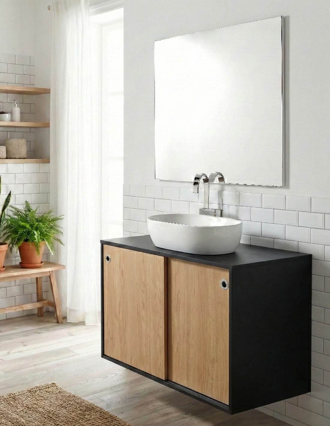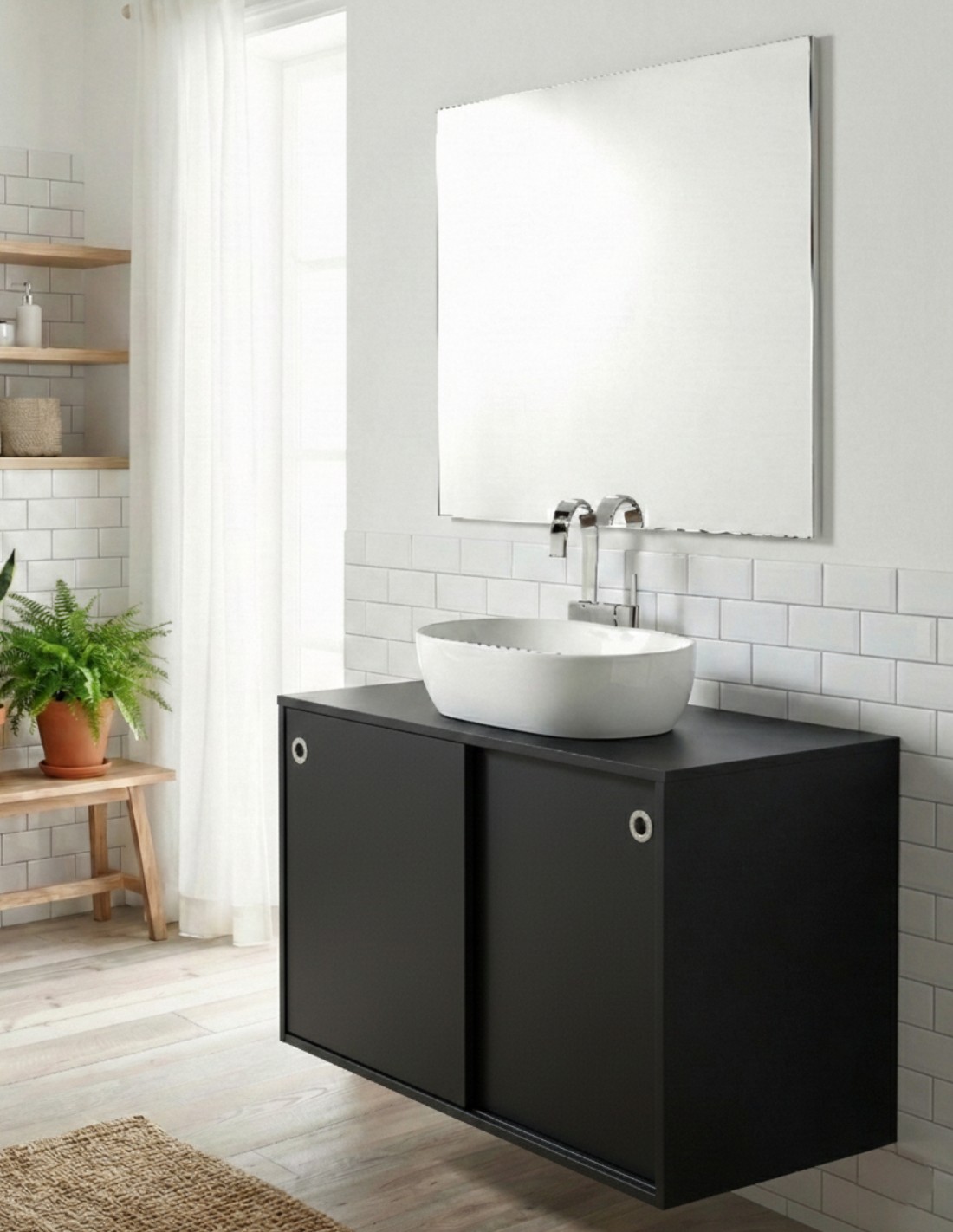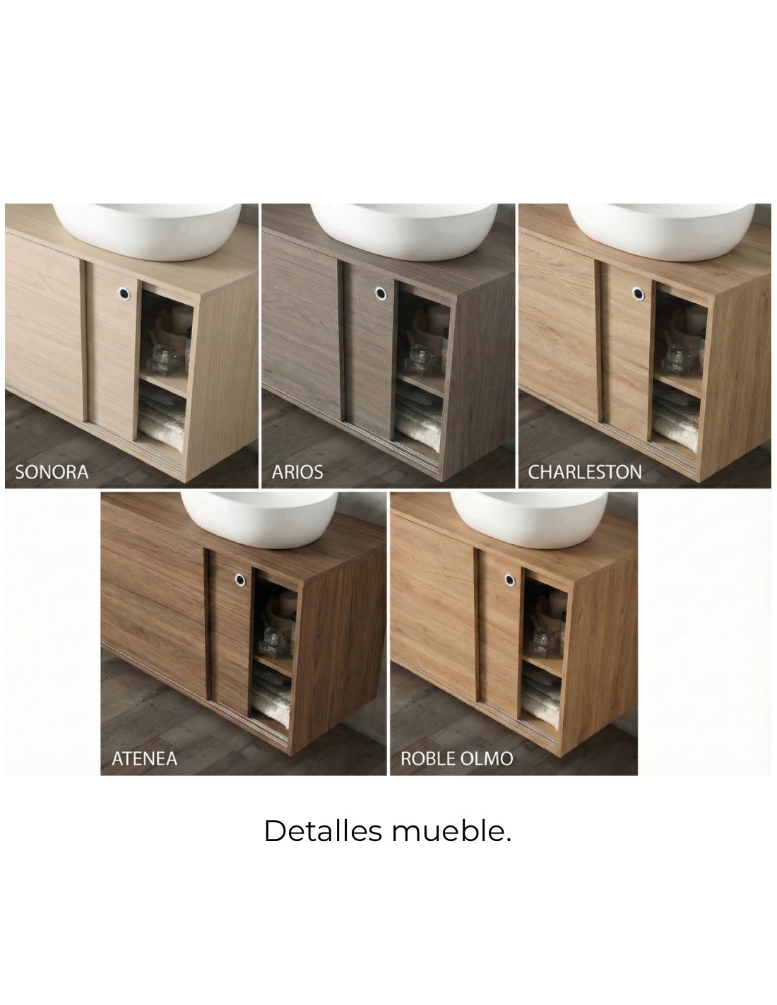 - Compuesto por 2 puertas correderas + tapa + lavabo sobre encimera.