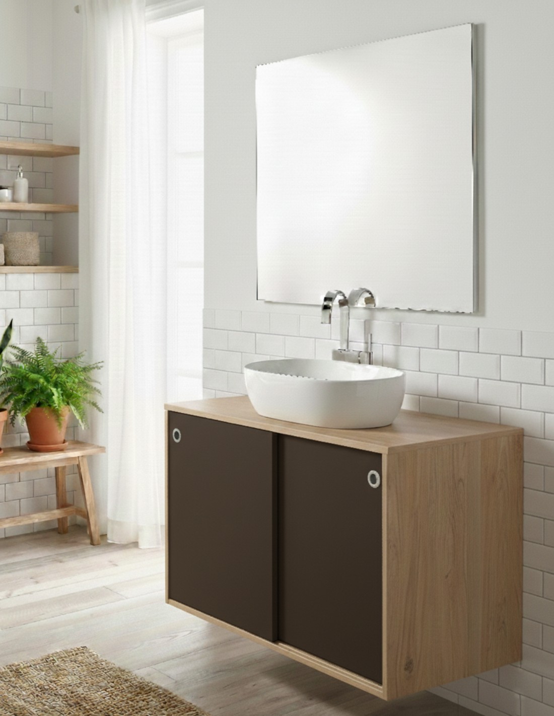 La mejor alternativa a los cajones extraíbles son las puertas correderas. Si no tienes espacio para abrir un cajón, esta es tu solución. Conoce nuestro mueble baño puertas correderas a medida modelo NEXT de Socimobel.