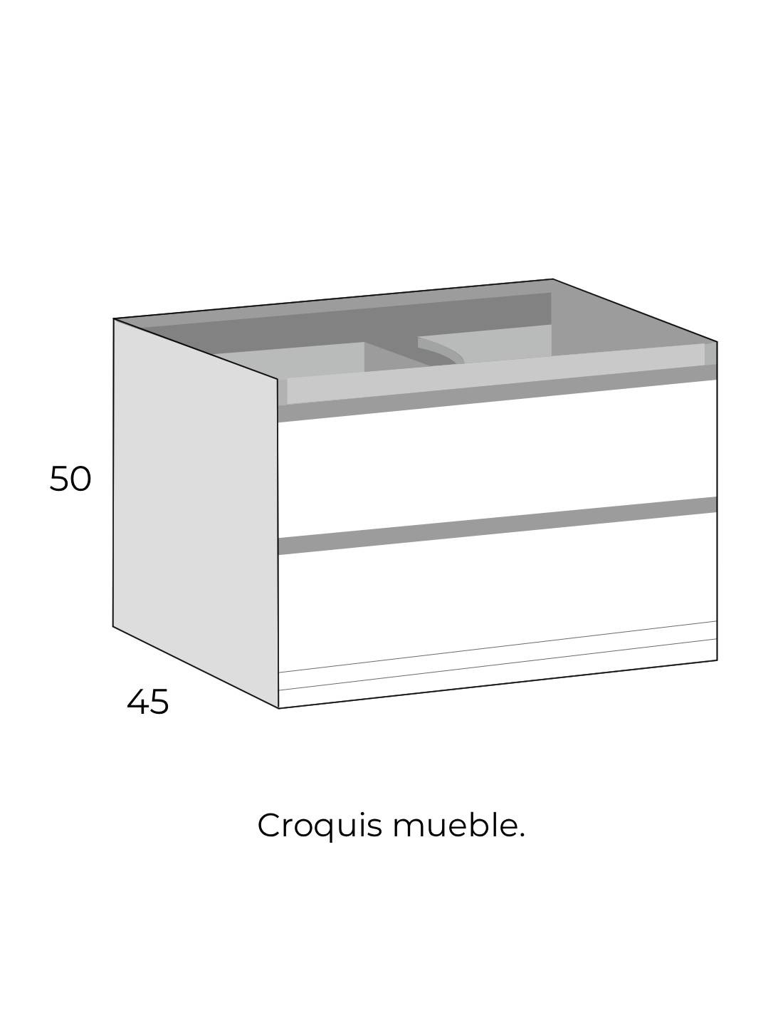 Conjunto baño 2 cajones + lavabo detalle lavabo 45 cm.