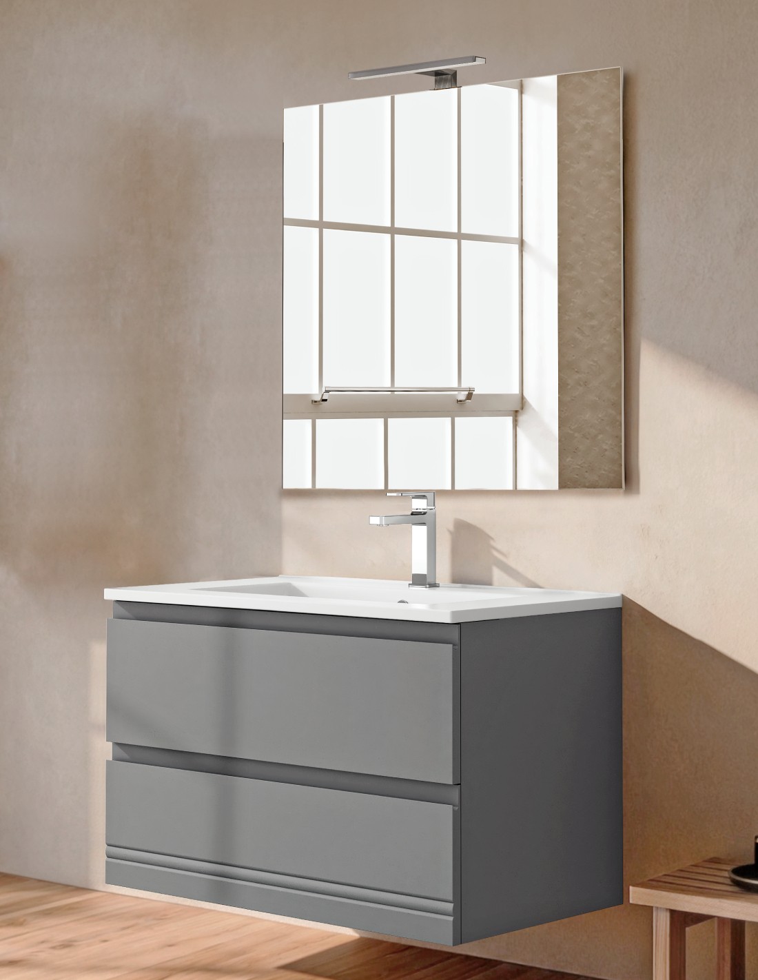 Conjunto baño 2 cajones + lavabo gris londres