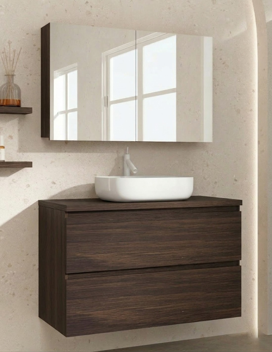 - Composición: 2 cajones + tapa + lavabo de sobre encimera.