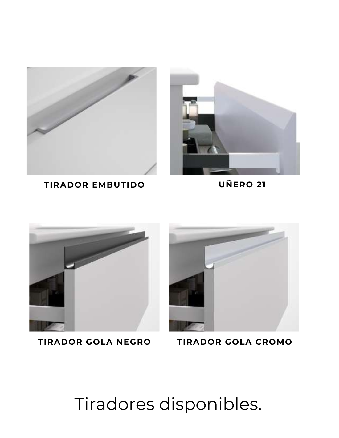 • Opción de elegir entre varios diseños y colores diferentes de tiradores (ver tabla).