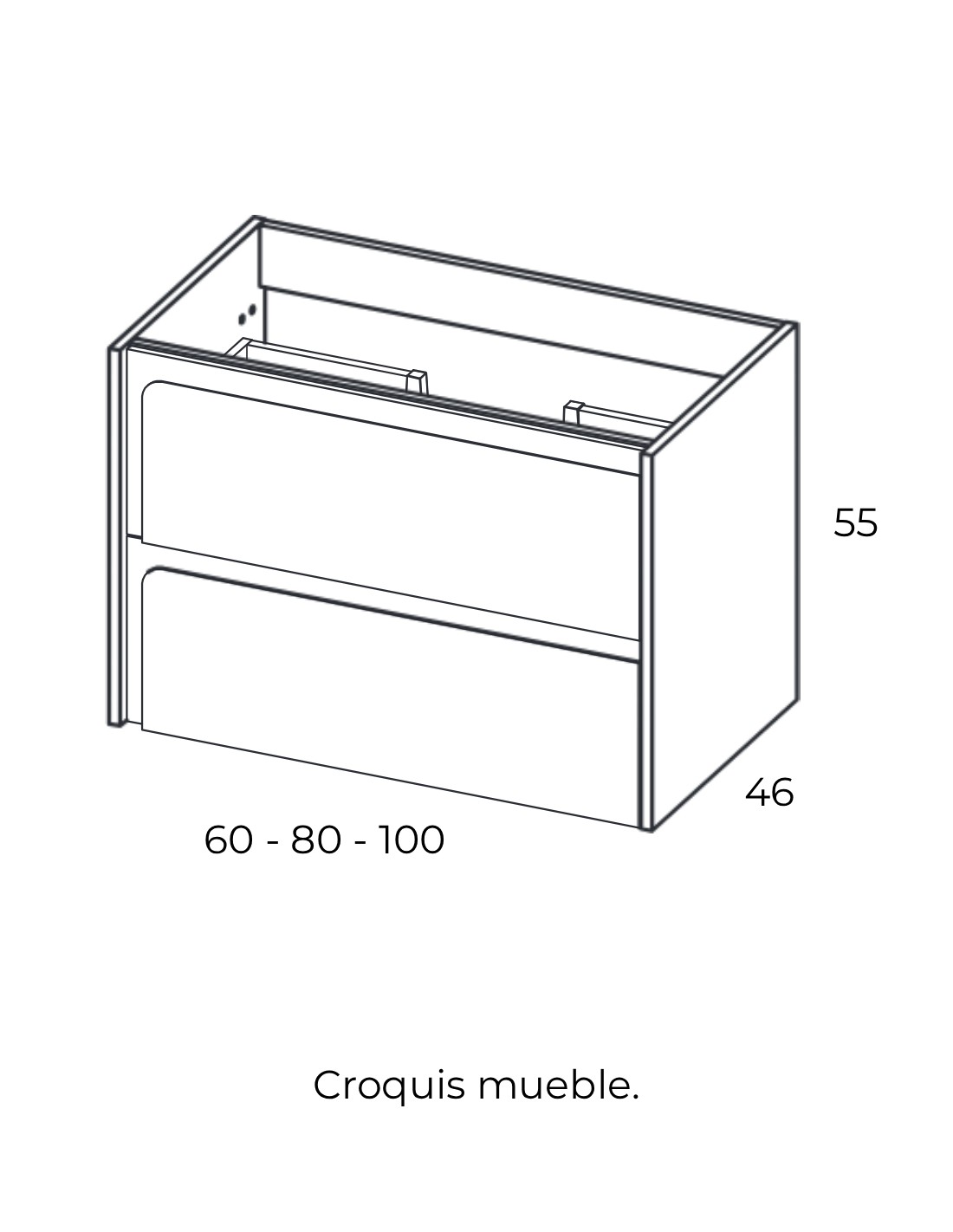 ANCHO: 60 | 80 | 100 cm. (2 cajones y un lavabo).