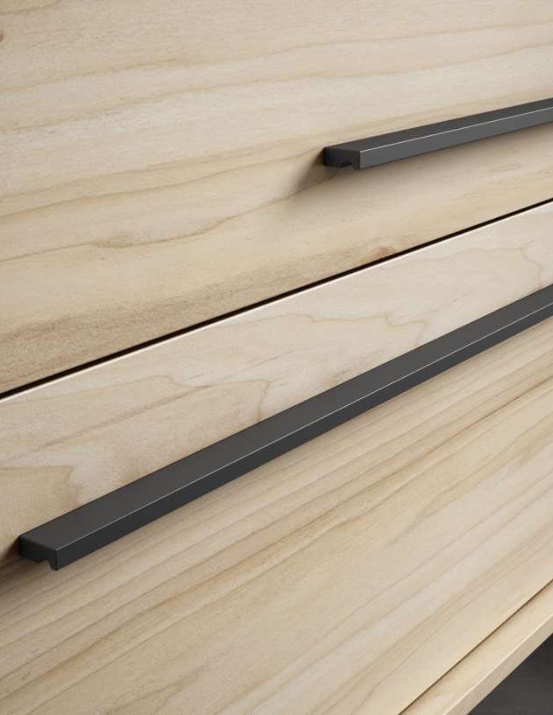 Cajones: Play con extracción total y cierre amortiguado. Base de 16mm, mayor resistencia a la humedad. Costados 12mm, más estabilidad y almacenaje.