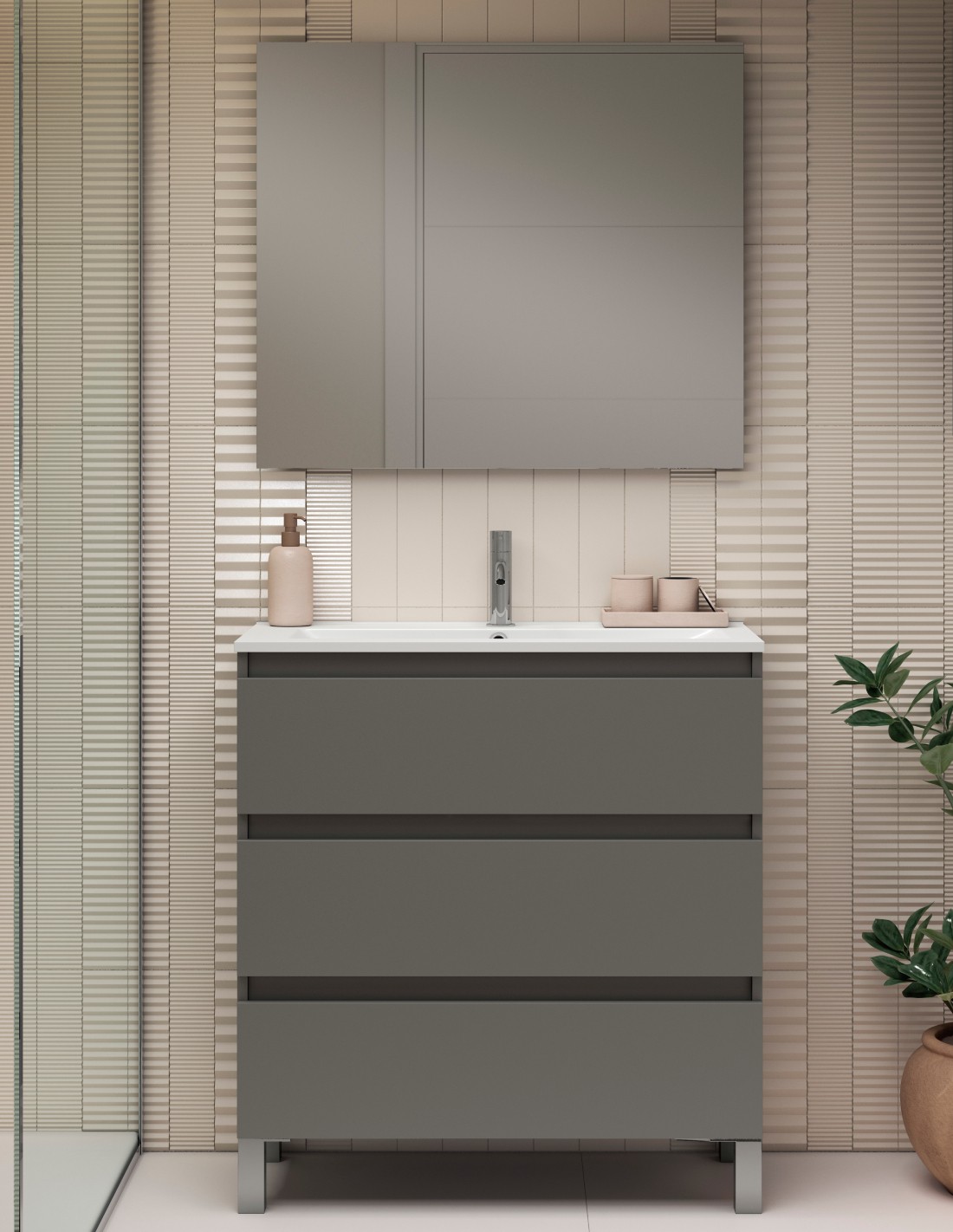 El conjunto fondo reducido Nido un mueble de baño compacto y funcional, ideal para espacios reducidos. Diseño actual y proporciones equilibradas que aportan practicidad y estilo sin renunciar a la estética. ¡Conócelo!