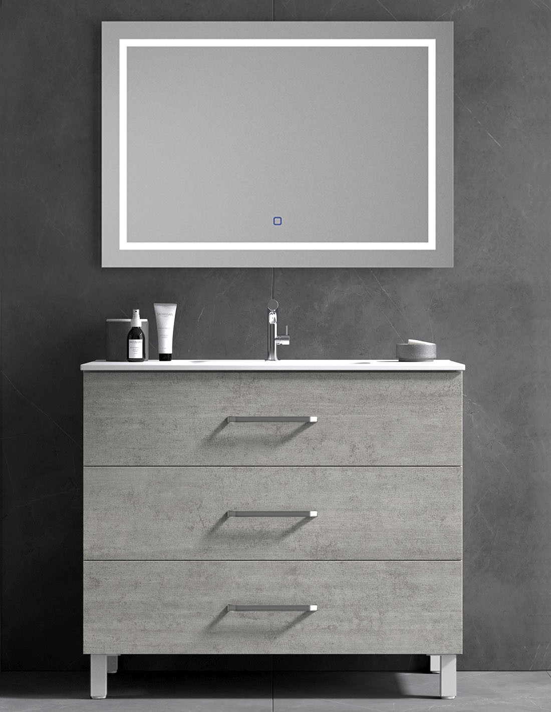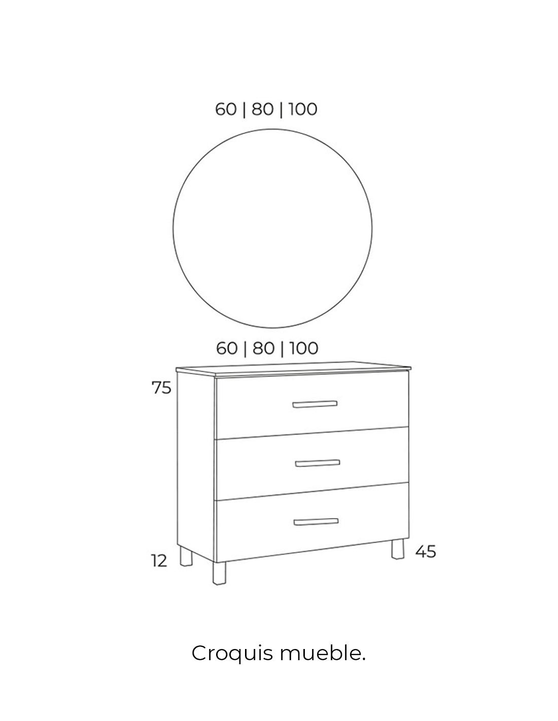 Mueble baño con espejo - opcional de 3 o 6 cajones FUNY con detalles cromo