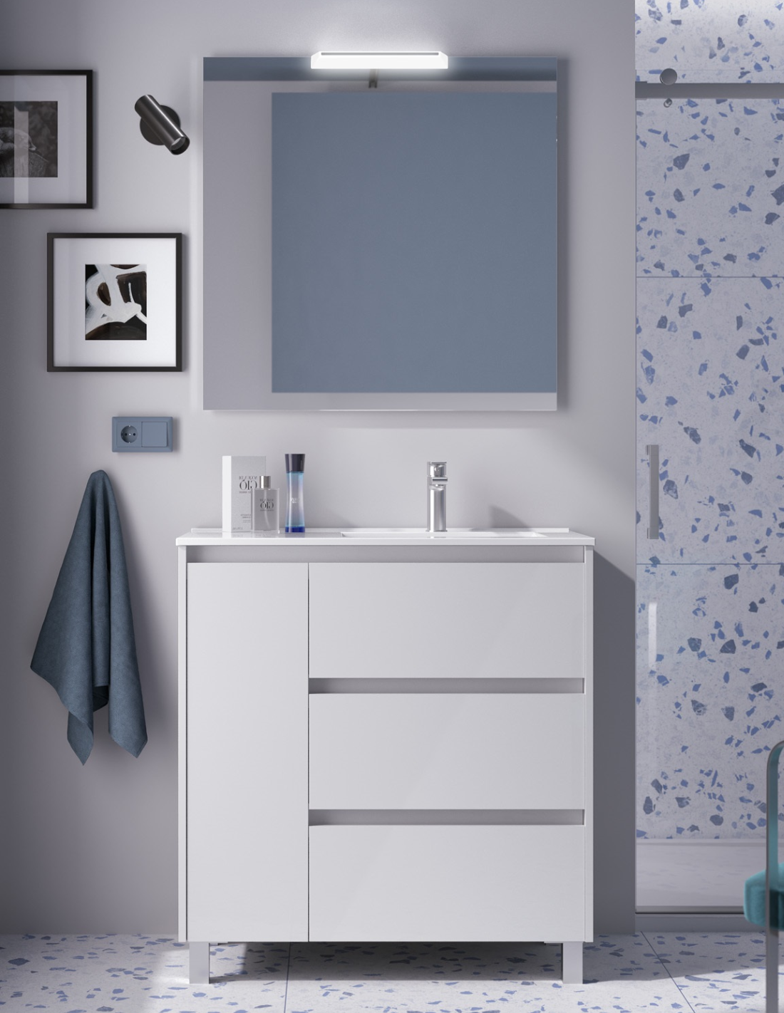 Mueble baño 3 cajones y puerta white gloss