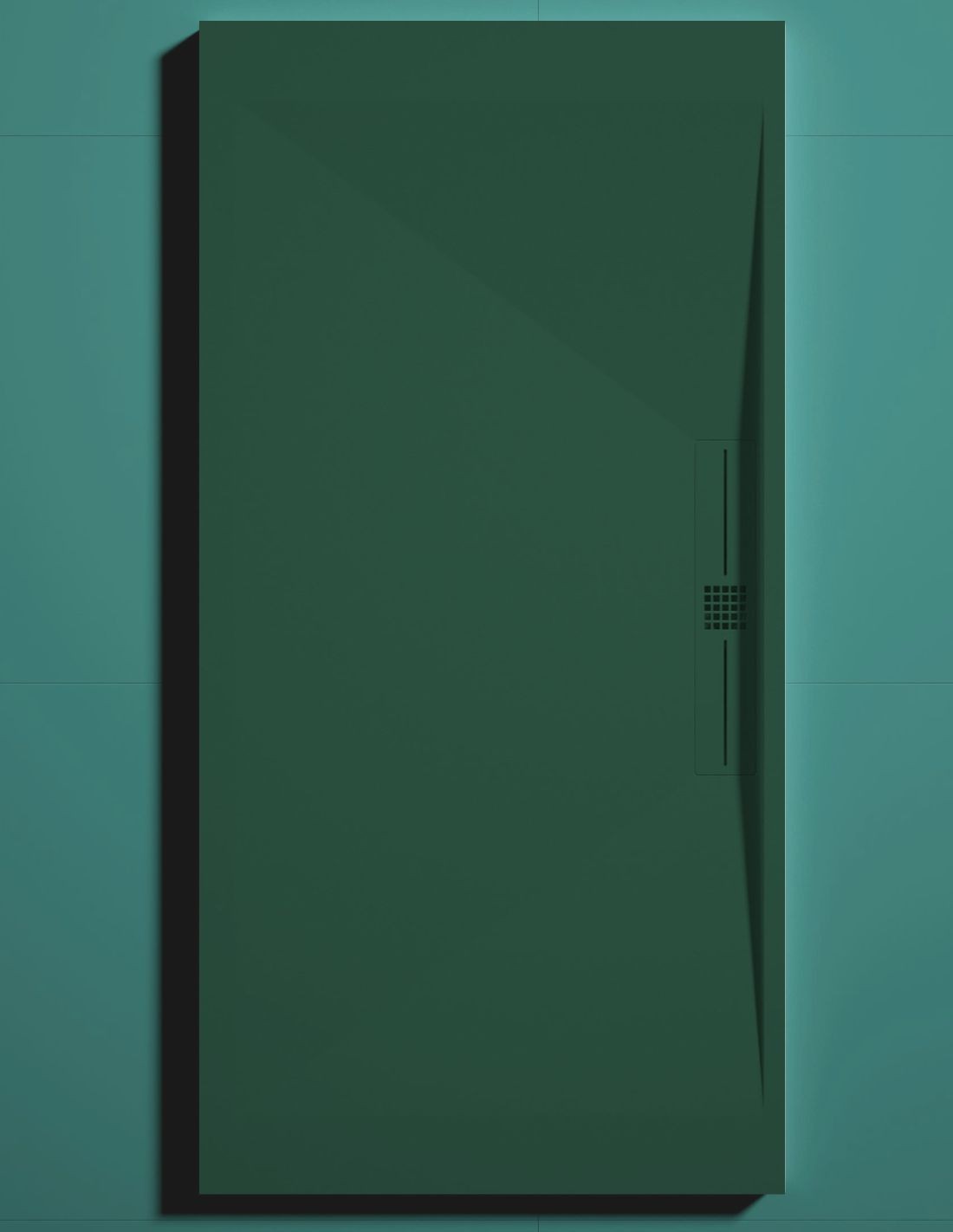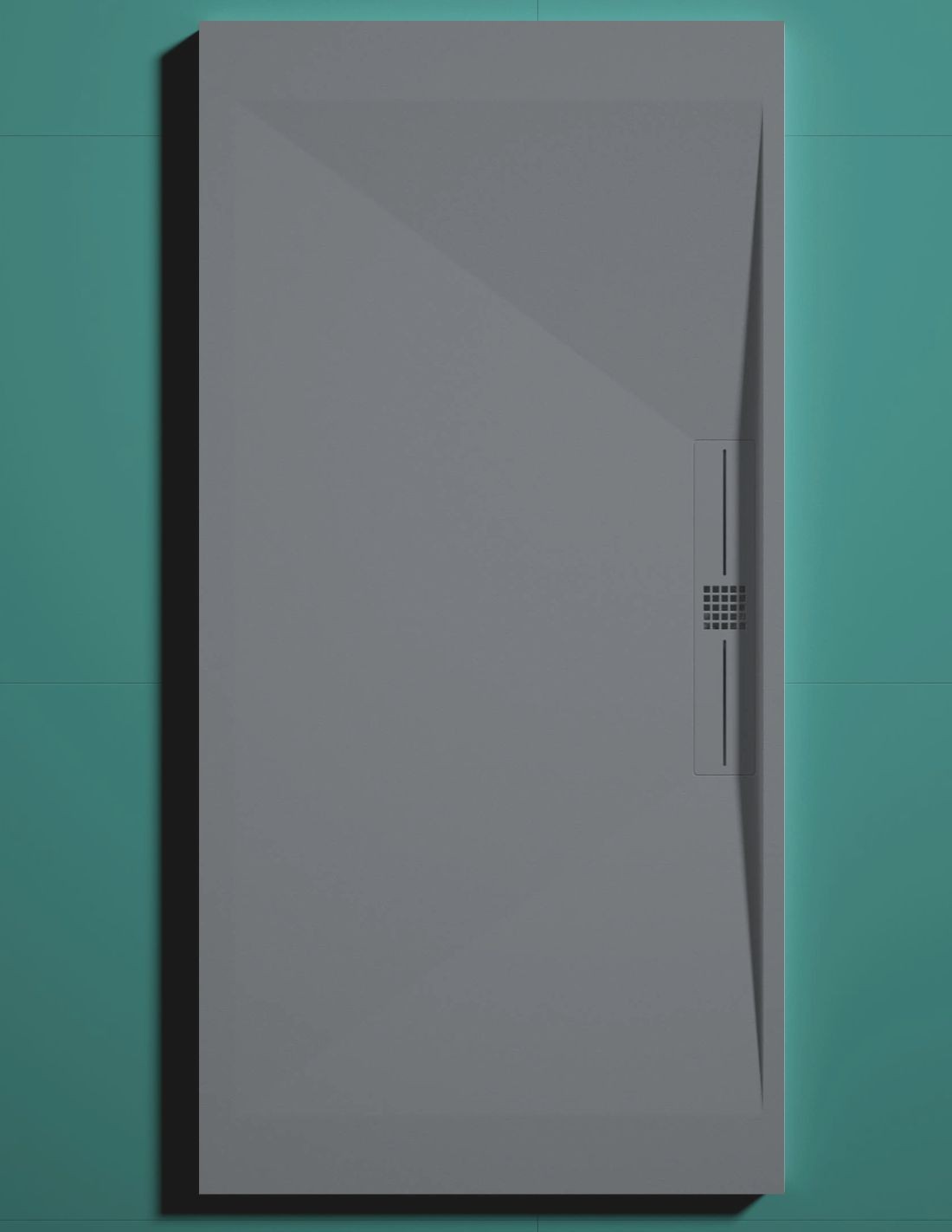Plato ducha rectangular rejilla color modelo SLIDER plato con pendiente centrada y rejilla alargada lacada. Garantiza la máxima seguridad antideslizamiento y permite usar mamparas sin perfilería inferior.