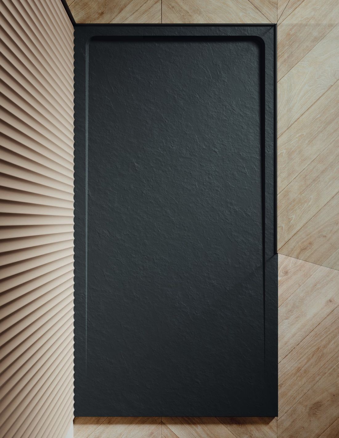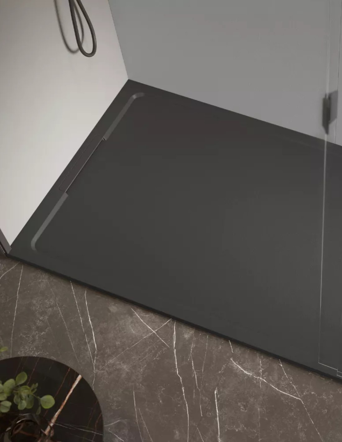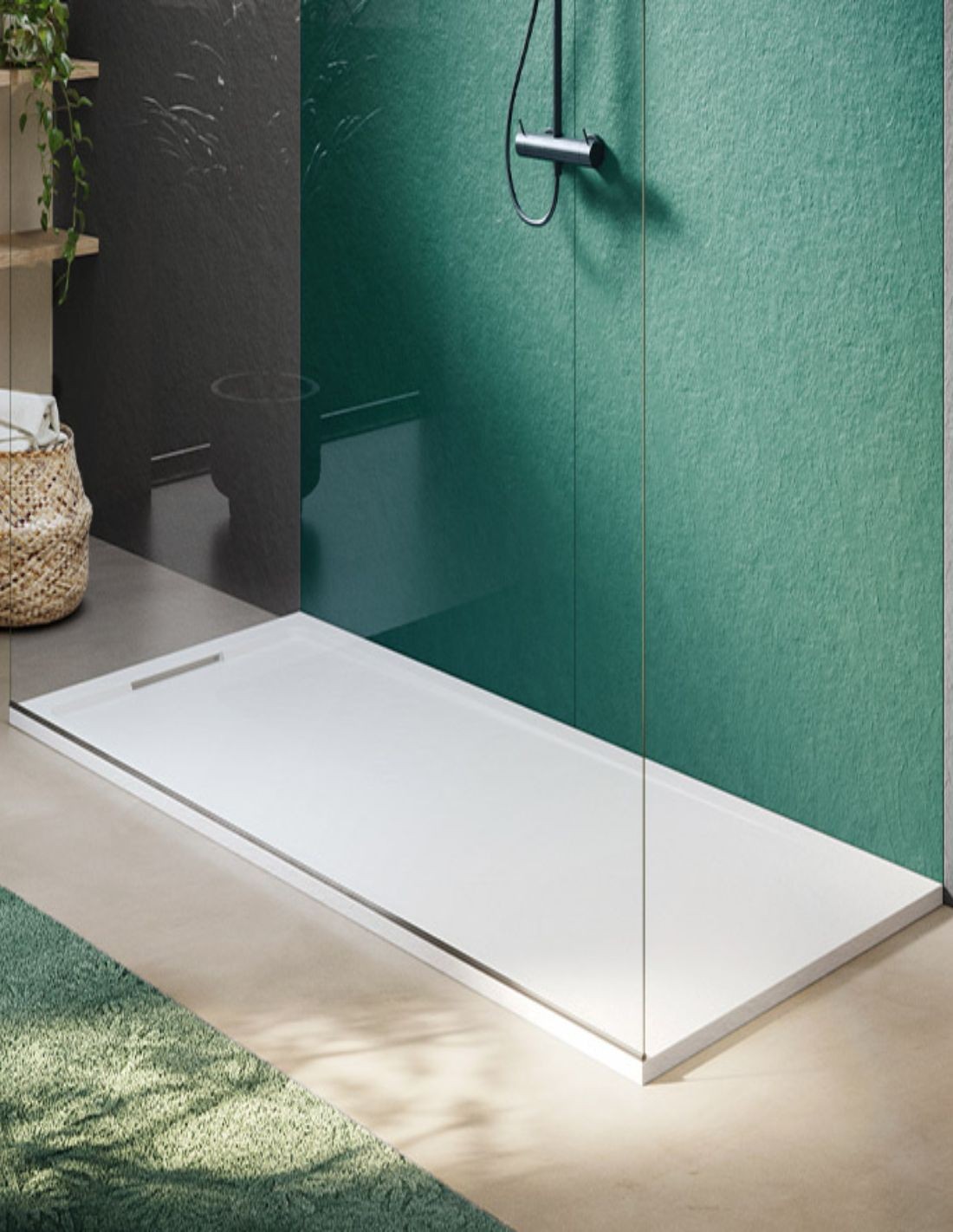 El plato ducha HALO Acquabella de diseño enmarcado, se caracteriza por un marco liso de suaves caídas creando un sutil contraste con la definición de la pizarra.
