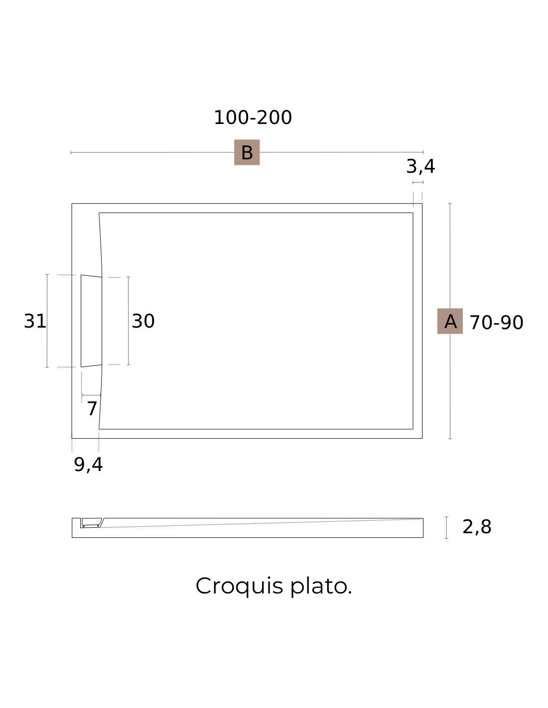 Características principales del plato ducha desagüe oculto Gandía Plus de Becrisa:
