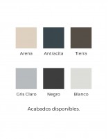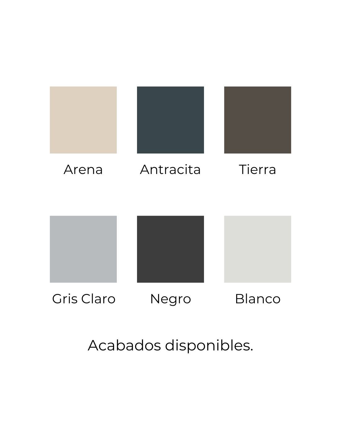 Disponible en acabado: BLANCO, GRIS CLARO, ANTRACITA, NEGRO, TIERRA, ARENA.