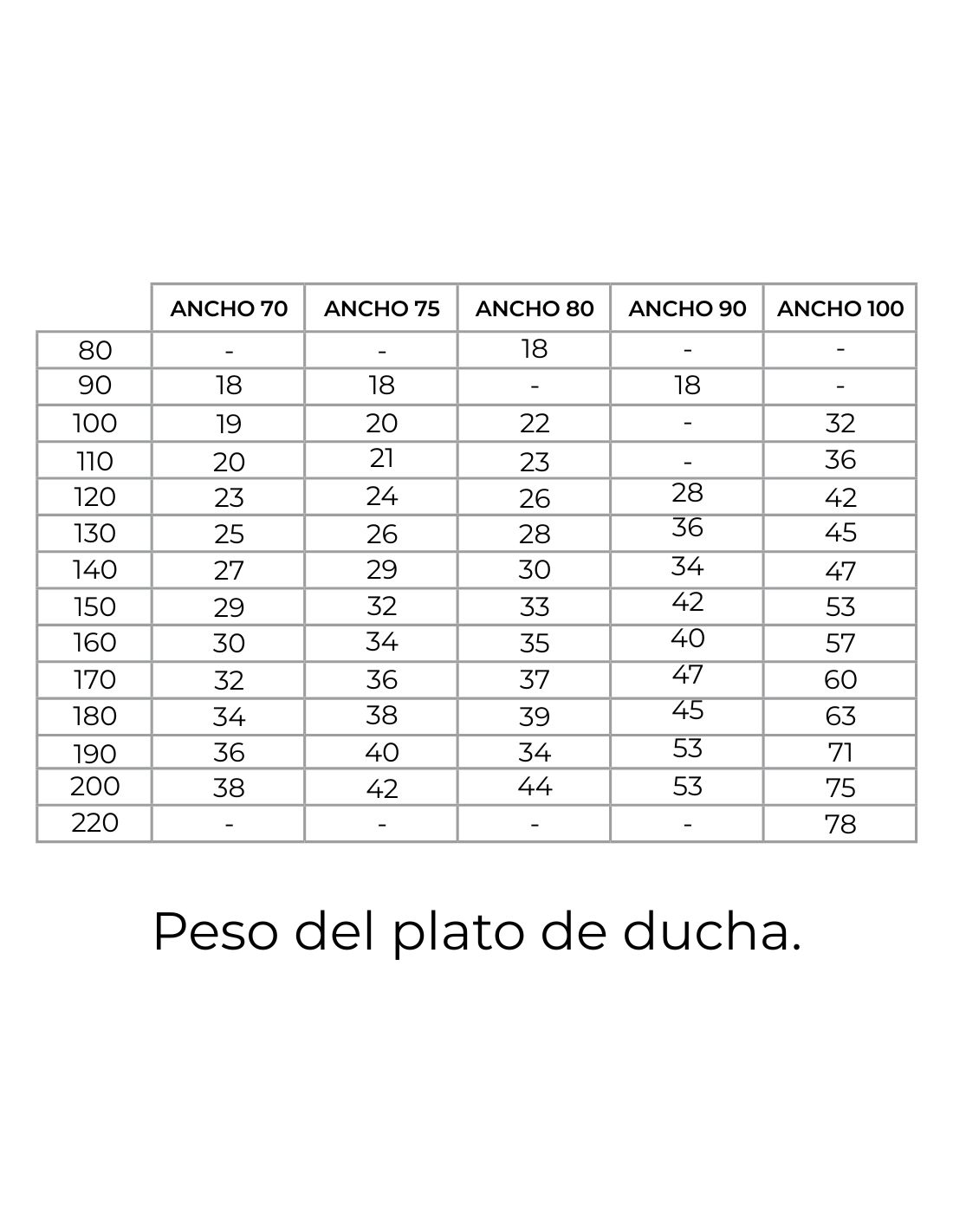 - PESO: Aligerado. Consulta aquí el peso aproximado de tu plato de ducha.