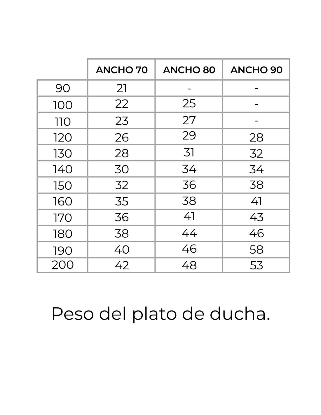 • PESO: Aligerado. Consulta aquí el peso aproximado de tu plato de ducha.