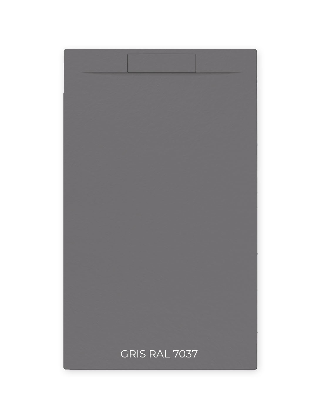 Plato de ducha de resina y carga mineral textura pizarra modelo Hermes. Plato vanguardista, alternativa al plato clásico, la situación del desagüe y su pendiente garantizan el perfecto flujo del agua.