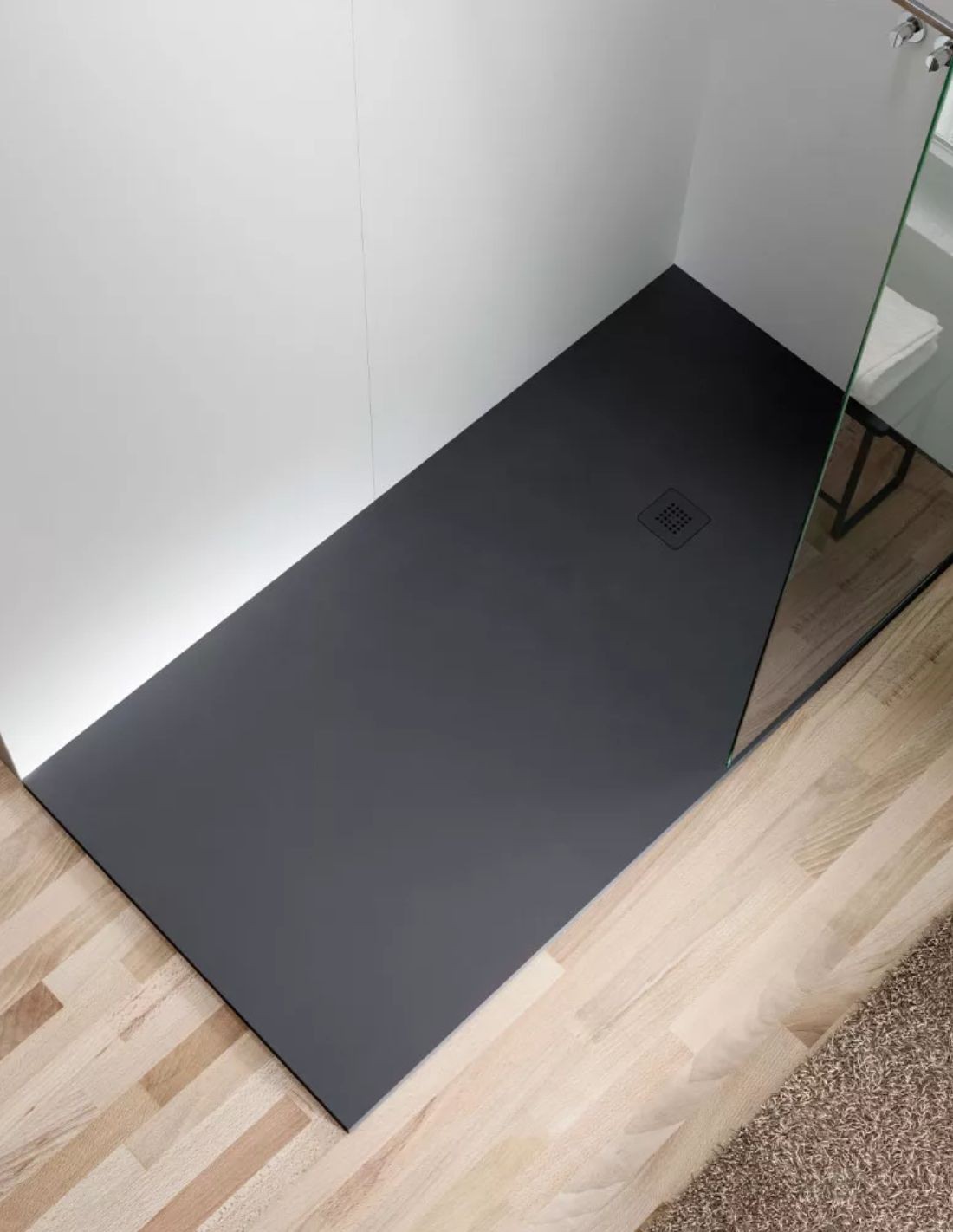 El plato ducha Zero Acquabella Base convertido en un básico indispensable del cuarto de baño. El modelo Base se viste con la elegante textura Slate para llenar de funcionalidad el espacio.