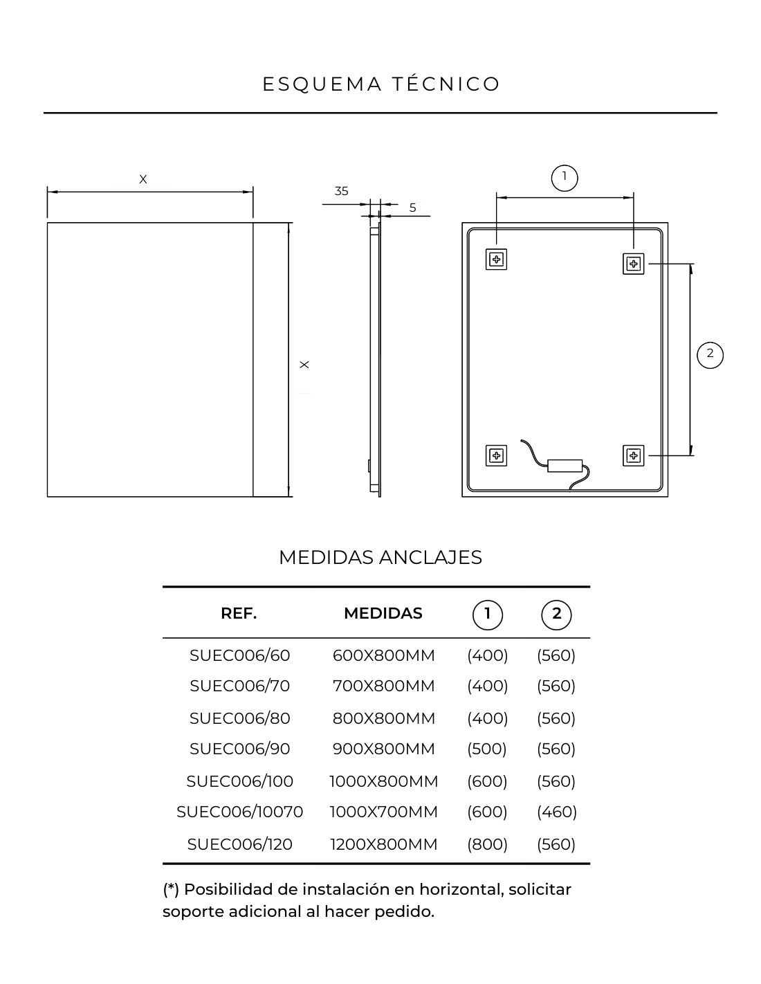 Espejo rectangular LED modelo SUECIA de Imex. ¡Dale a tu baño un toque elegante y sofisticado con nuestro modelo SUECIA! Además, disponible en diferentes medidas que puedes colocar horizontal / vertical indicándolo en comentarios.