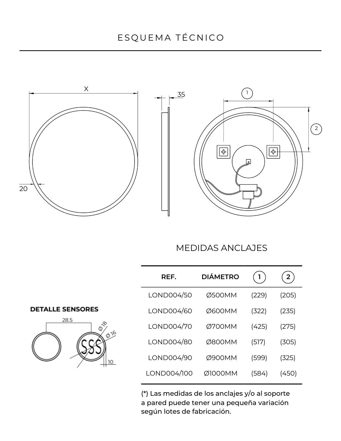 50, 60, 70, 80, 90 y 100 cm. de diámetro Ø