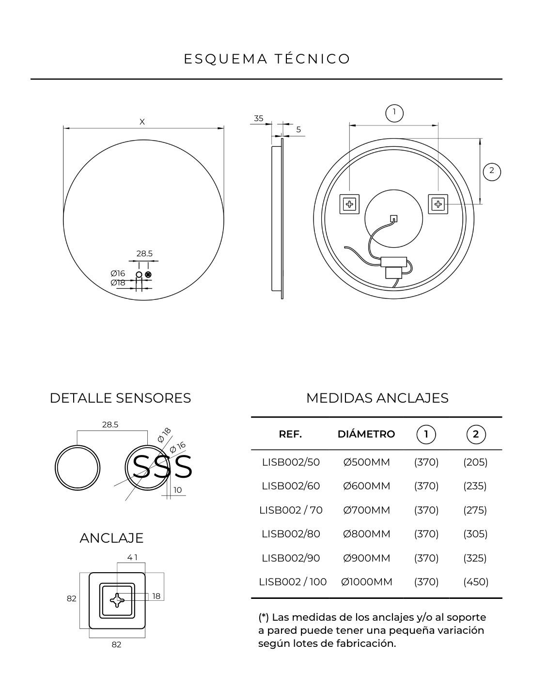 Medidas: 50 | 60 | 70 | 80 | 90 | 100 cm Ø de diámetro.
